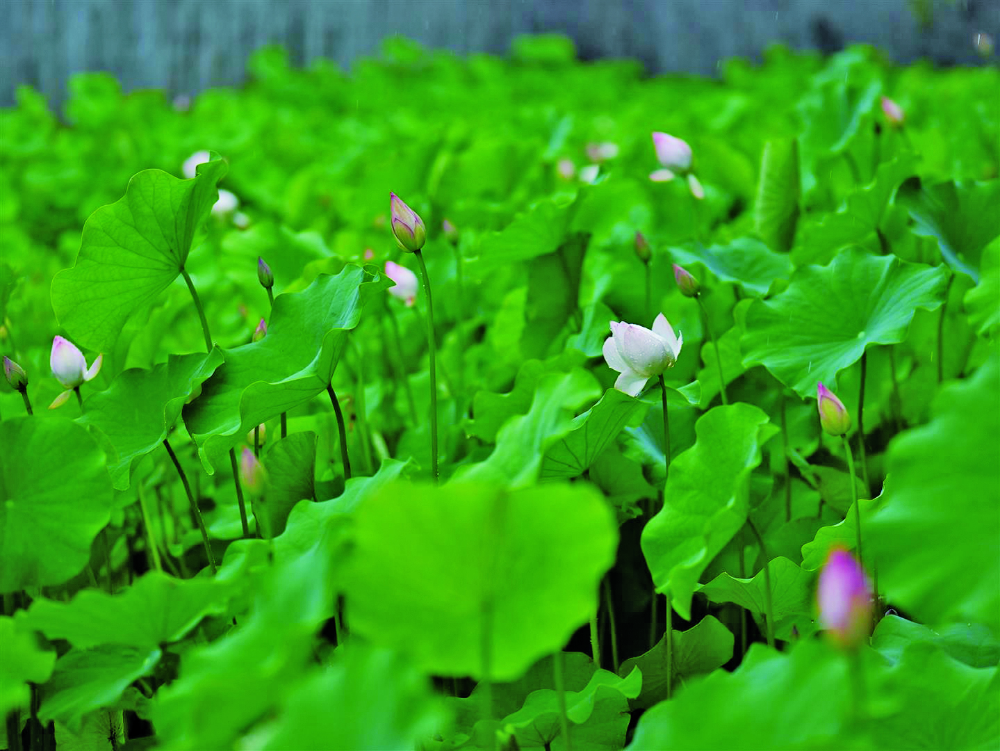 近日,金华开发区梅园内的荷花在雨中竞相绽放,粉嫩的荷花在绿叶映衬下,吸引着市民、游客驻足池边举起相机、手机,捕捉这难得一见的雨中荷韵。新荷出水,原本娇艳的荷花在雨水的浸润下,花瓣更显饱满通透,粉红、纯白的花朵在朦胧雨雾中若隐若现,空气中弥漫着荷花的清香,构成一幅动态的“水墨丹青”。