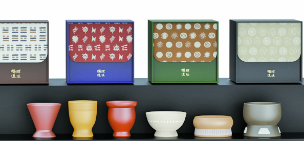 金奖作品“与9000年前的古人对话(定制杯具)”是今年新开发上山系列文创中的代表产品,创意源于义乌桥头考古遗址发现的彩陶器型。作品中对上山文化概念的阐释、文化符号的视觉呈现以及陶器与茶具融合的概念获专家好评,他们点赞“将古人的生活、艺术与美学,以及生活痕迹、生活方式浓缩其中”。