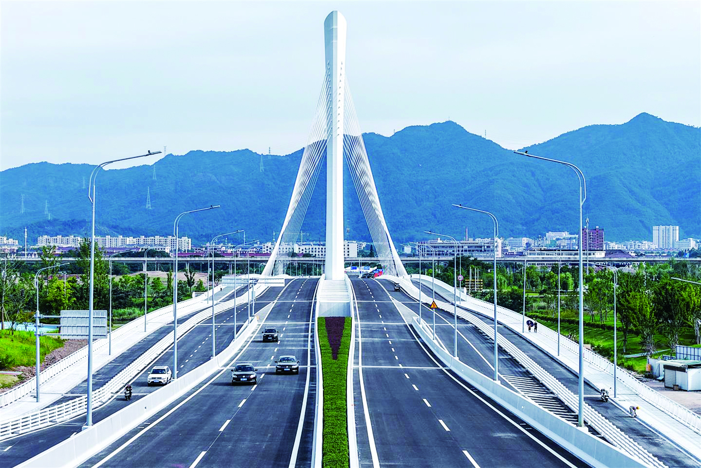 记者 陈启宇 通讯员 吴意琼 文/摄 6月19日下午,随着临时隔离护栏拆除、交通信号灯亮起,东阳博士大桥主线段正式通车。此次通车范围为甘溪东街至江滨南街路段,全程1.8公里。跨江主桥总长260米、宽51米,双向6车道。 博士大桥的建成不仅缩短市民过江时间,其独特造型也为东阳江增添了一道亮丽风景。该项目预计6月底全面完工,后续博士路高架项目将连接博士路隧道,进一步提升区域交通连贯性。