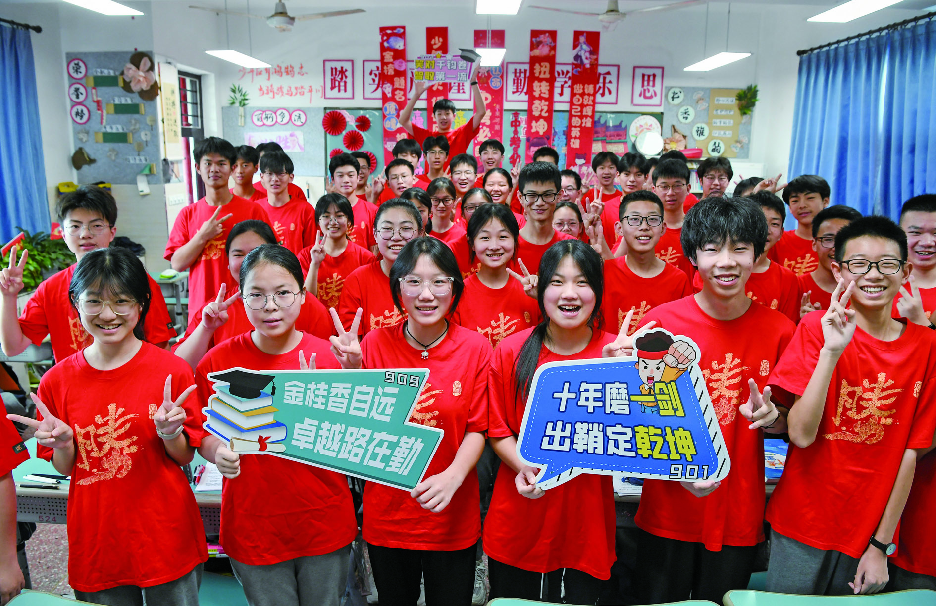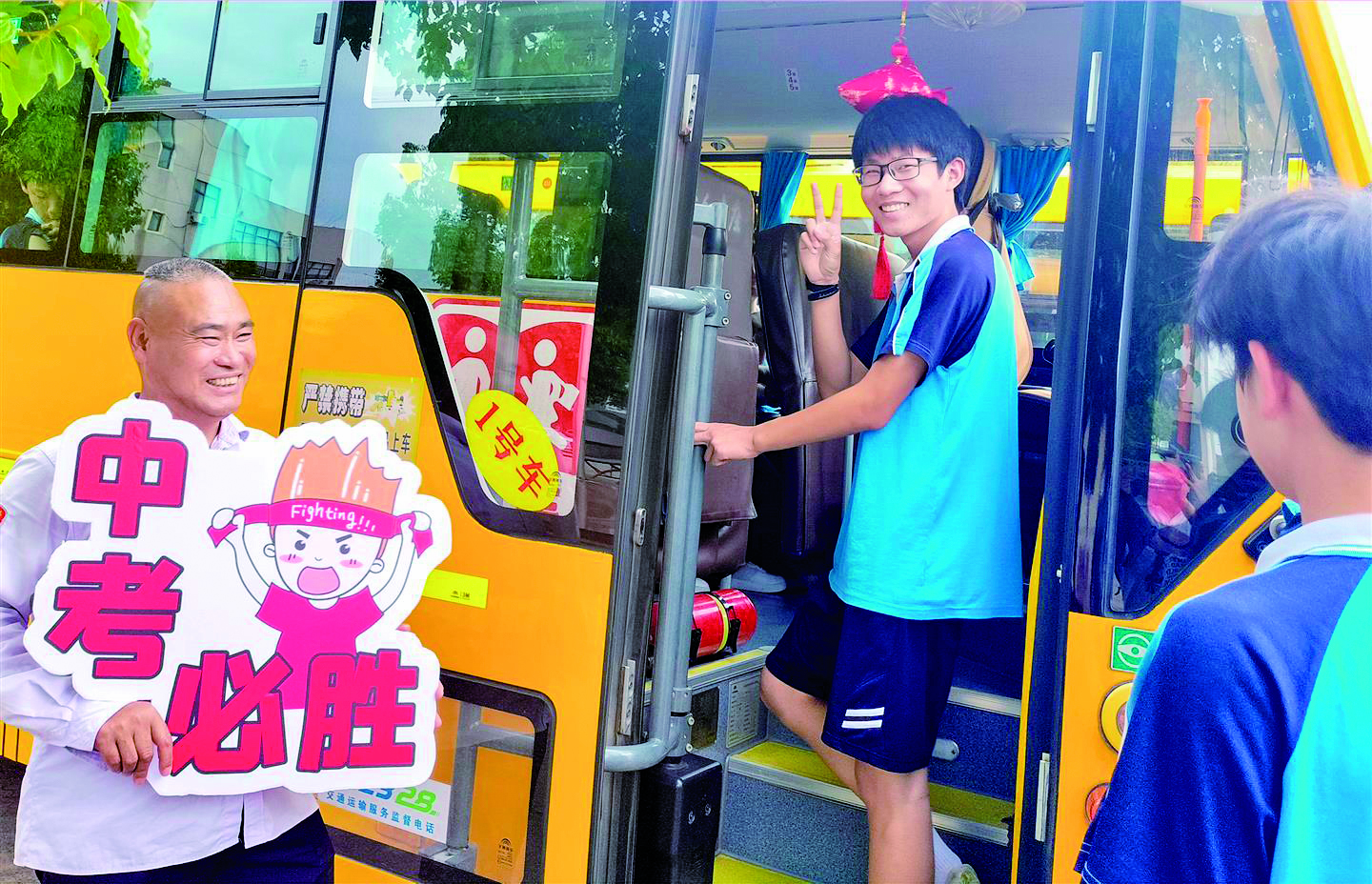 中考期间,相关暖心助考行动,为学子们营造了温馨的迎考氛围。一些学校的“中考加油菜单”以及考前励志活动更是美好寓意满满。图①金华九中的考生们在考前励志。图②市交投公交集团营运一公司开通了“中考护航专线”。图③金华五中成美校区考点,考生完成首日考试,走出考点。