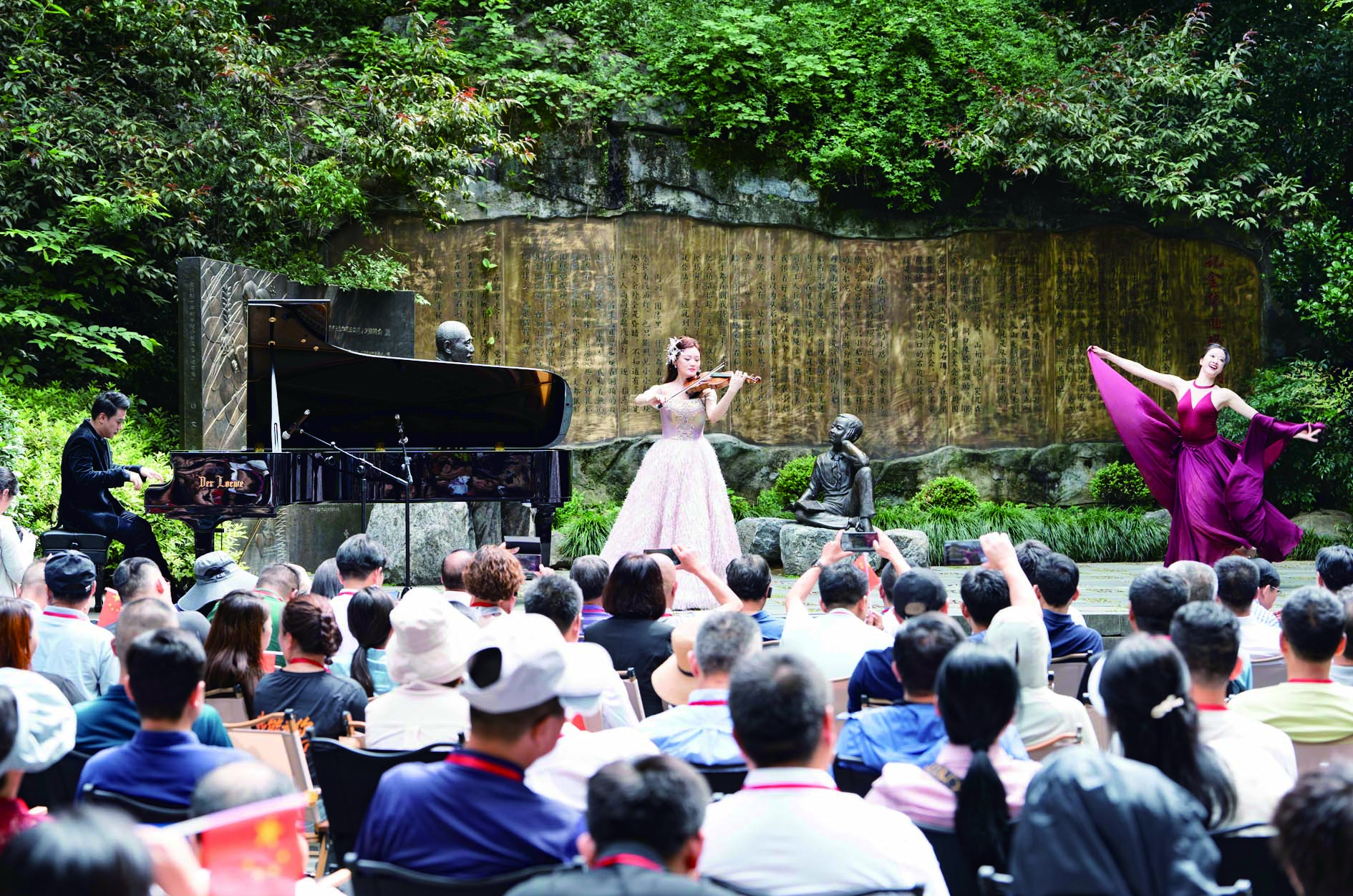 记者 陈业 文/摄 6月21日,金华双龙风景名胜区叶圣陶广场上,书声琅琅、音韵流转、舞姿飞扬。《与星同行》大型系列主题宣传活动·美丽中国万里行文艺志愿者走进金华山公益活动,精彩启幕。 本次活动由中国风景名胜区协会、金华双龙风景旅游区管委会主办,浙江金华山旅游发展集团有限公司承办。金华市林业局、金华市新闻传媒中心、浙江天迈文化科技有限公司、北京天翔睿翼科技有限公司作为本次活动的支持单位。