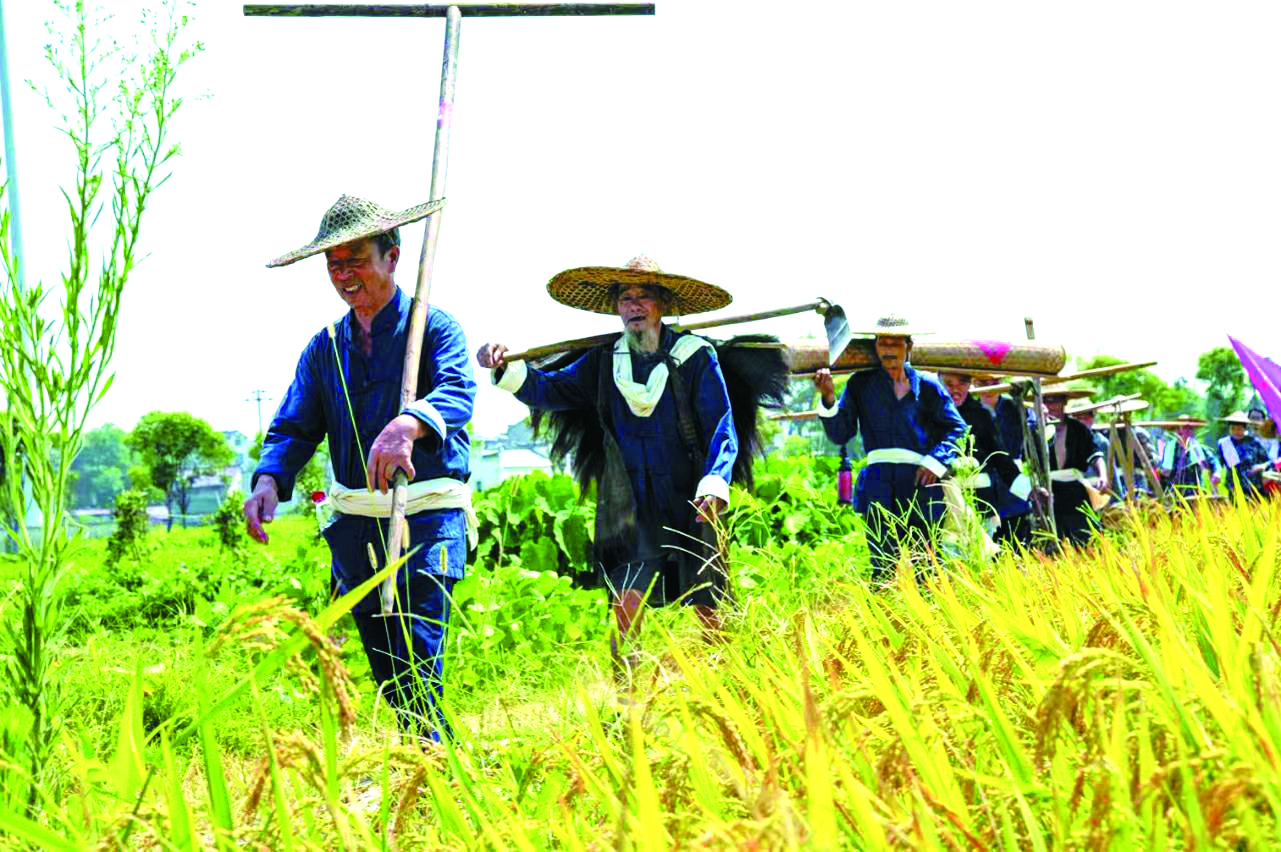 这“徐皇圣帝”以及随从“毛杨蔡卫”在元宵节会被我们供奉在伊氏宗祠(思任堂)里,这是下伊村的摆胜——摆牲。《汤溪县志》说正月风俗:“是月赛会最盛,其尤著者为下伊之十五、黄堂之廿六。凡会场陈设赛品,各极富丽。有装高跷台阁,扮演故事以助胜者,而架列巨猪十百,谓之胜猪,或重至四五百斤,尤为特色。”除了古意盎然的元宵节摆胜,下伊还有被称为“活着的上山文化”的保稻节。在汤溪一带,萧家、西祝、派溪李、梅头、溪滩下等村把农历五月廿五这一天称为“保稻节”,而在下伊、东祝、派溪童、黄堂等村,保稻节却是六月初一。《汤溪县志》风俗卷:“六月初一,或五月廿五,农民以牲礼祈祷于土谷之神,谓之保稻。”《龙游县志》风俗卷说得更为明确:“二十五日:祀田神,谓是日为五谷神生日也。北乡则以六月朔日行之。”也就是说,保稻节是为五谷神庆生!或为五月廿五,或为六月初一,这是单季稻抽穗扬花时节,人们从山头祖殿抬出五谷神巡游,在畈上原有的五谷神殿遗址举行隆重的祭奠仪式,借此向五谷神祷告风调雨顺的美好愿望。