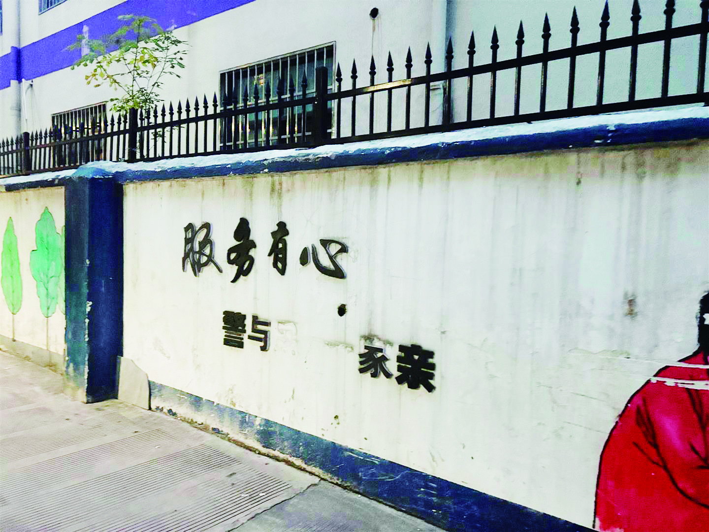 在附近经营小卖部的王先生告诉记者,这些公益广告已绘制多年,其店铺墙壁上也绘有古诗词等公益内容。“我们很喜欢这些广告。”王先生说,“但是旧了破了确实不好看,还是希望能够修补一下。”