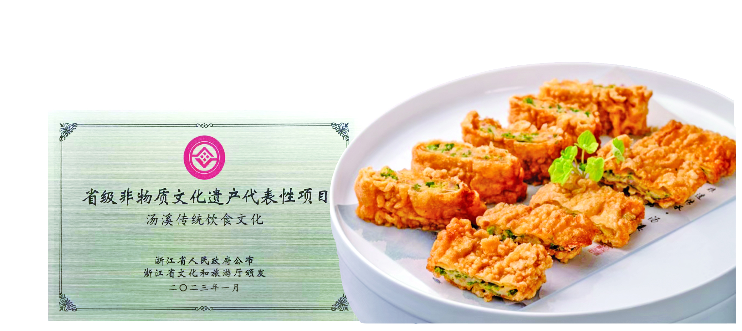 功夫不负有人心,2018年发布《汤溪名膳热菜系列》市级推荐性标准,2020年发布《汤溪名膳冷菜系列》市级推荐性标准,2022年2月发布《汤溪名膳点心系列》市级标准,2022年底入选第六批浙江省非物质文化遗产代表性项目名录,汤溪传统饮食文化系列终于实现了标准化的制定。