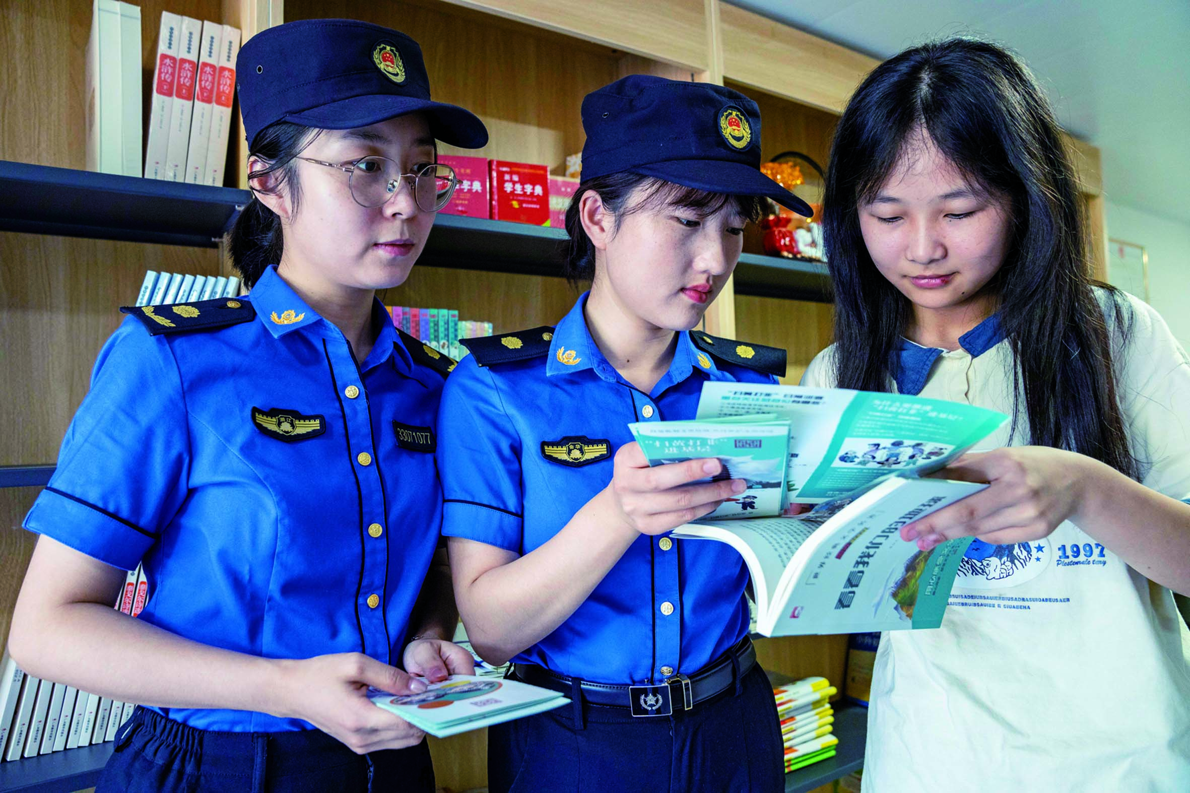 记者 陈业 文/摄 为营造有利于未成年人健康成长的良好文化氛围,昨日,婺城区综合行政执法局执法人员深入书店、文具店、音像制品店等重点文化场所,开展“扫黄打非”专项普法宣传。