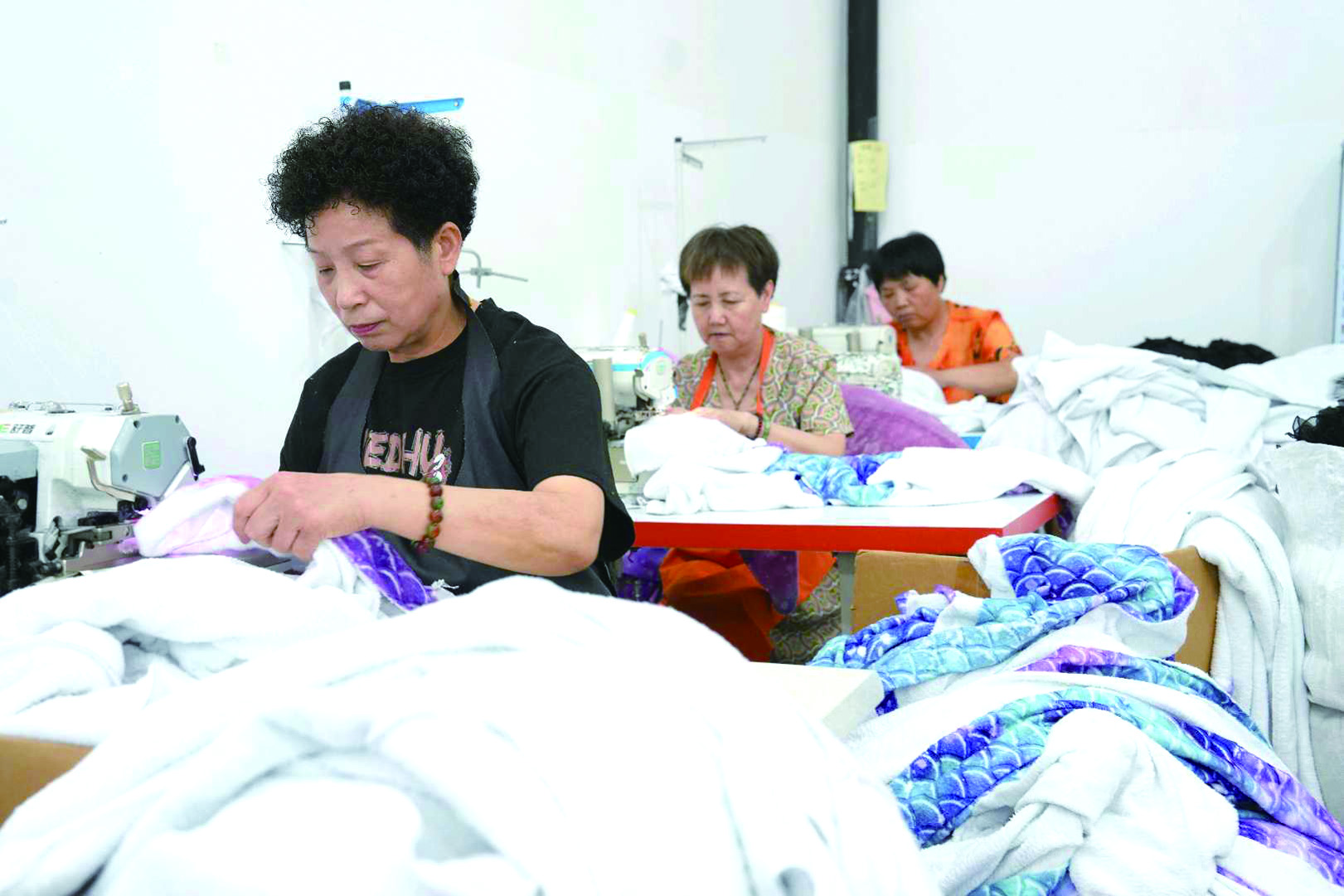 记者 潘佳薇 文/摄 昨日,在兰溪市兰江街道华丰社区共富工坊内,居民们正在用缝纫机制作睡袋。 今年以来,兰溪市巾帼共富工坊服务中心已成为岗位信息汇聚与就业服务对接的枢纽,线上线下同步发力,为女性求职者开辟多元通道。巾帼共富工坊已助力1100多名妇女创业就业。
