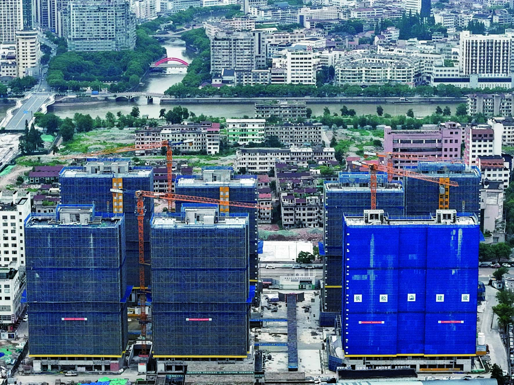 记者 陈业 通讯员 杨成栋 文/摄 昨日,在永康市城市更新南苑片区(四期)建设工程一标段(老华丰地块)项目现场,塔吊林立,工人忙碌,几幢主体大楼均已结顶,工程按计划进入到室内装修阶段。