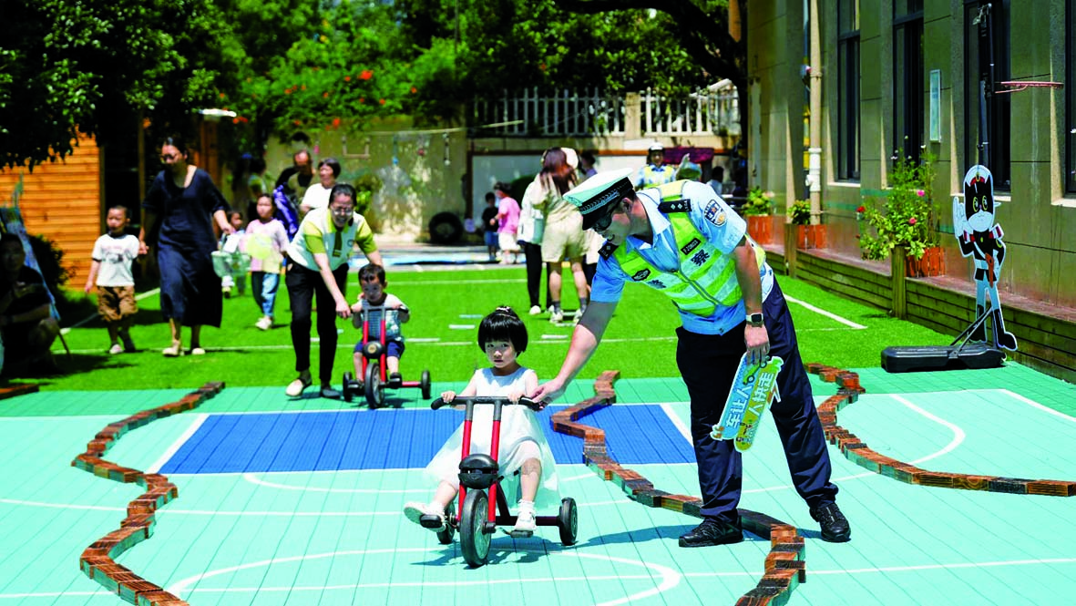记者 吴越悦 文/摄 6月27日,兰溪市公安局交警大队民警走进当地幼儿园,组织师生家长共同参与“警幼家同行,平安护童心”主题暑期安全活动。 活动将交通安全、防溺水、反诈知识与漆扇、布贴画等相结合,还有各类互动游戏、交通安全主题文艺表演,传递平安交通、法治交通、文明交通的理念。