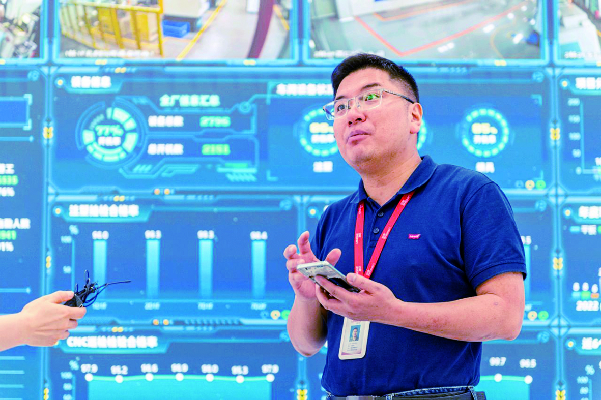 这背后是强大的研发团队、先进的工艺技术与前沿的设备配套。在数控智能大屏上,记者看到,盈旺精密研发人员和工程师占比接近20%,拥有超1850套CNC、372台精密注塑机、180套精密模具加工设备等“硬核”实力的支撑,智能化车间的生产动态被实时监测展示……