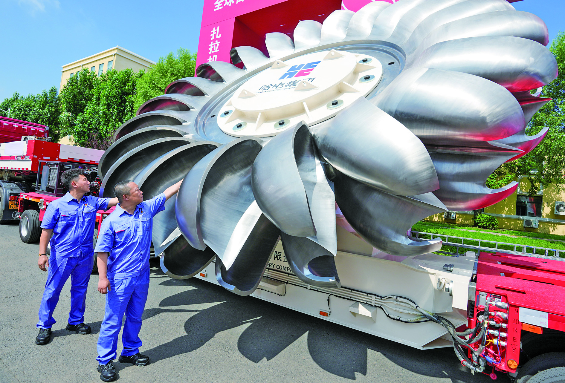 近日,世界首台单机500兆瓦扎拉水电站冲击式水轮发电机组转轮在哈电集团哈尔滨电机厂有限责任公司自主研制成功,并于7月2日发运,标志着我国在高水头、大容量冲击式水轮机组核心装备领域实现历史性突破。 该自主化研制的冲击式转轮由21个精密水斗构成,外径达6.23米、整轮厚度1.34米、重量约80吨,是国家“藏电外送”骨干电站扎拉水电站水轮发电机组的“心脏”,为发电机发出500兆瓦额定功率提供源动力。 新华社发