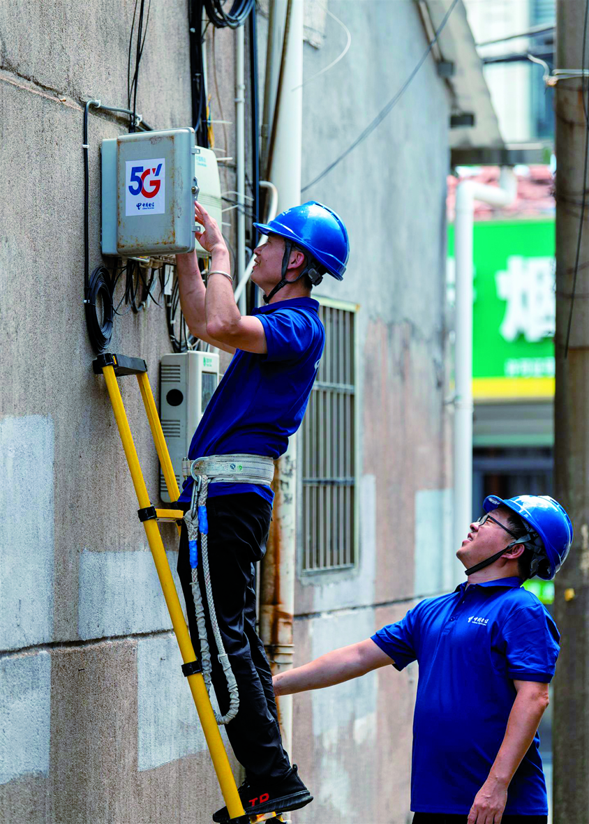 记者 胡肖飞 文/摄 7月5日,婺城区城东街道一幢居民楼前,中国电信金华分公司工作人员冒高温在检查线缆。 进入夏季以来,为保障通信通畅,中国电信金华分公司工作人员冒高温坚守岗位,每天在一线忙碌。