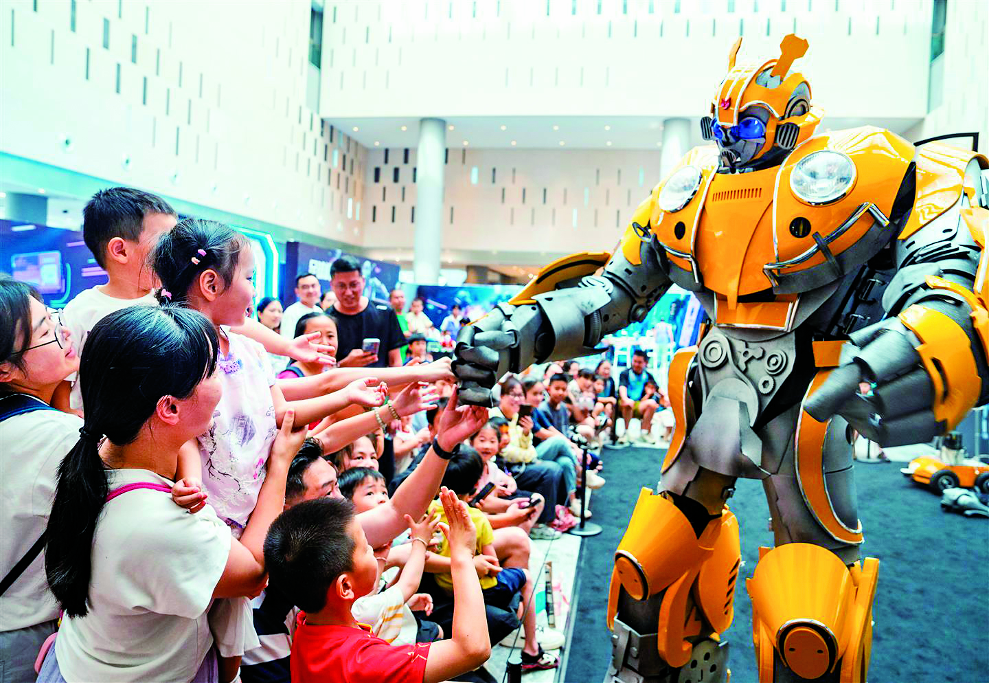 步入现场,科技感扑面而来。宇树人形机器人G1灵活舞动,流畅的舞姿精准复刻复杂动作;宇树机械狗Go2不甘示弱,灵活穿梭于模拟障碍间;大黄蜂机器人高大的身躯配合闪烁灯光音效,仿佛从银幕跃入现实。