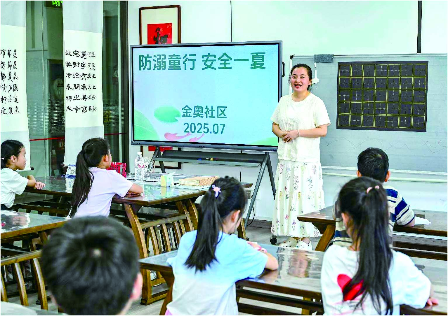 记者 吴潮宏 文/摄 近日,在婺城区白龙桥镇金奥社区党群服务中心,由金奥社区工会和关工委牵头,金奥社区雷锋事迹馆协办的暑托班迎来辖区内近20名小朋友。 在接下来一个月里,在社区工作人员和志愿者的带领下,将开设“课业加油站”“创意工坊”“智慧课堂”“阳光体育”等项目,志愿者除了提供学业辅导,帮助孩子巩固知识,养成良好的学习习惯,还将带领孩子们探索自然,开阔视野,丰富精神生活,解决辖区部分双职工家庭子女暑期“看护难”问题,为孩子们营造一个安全、充实、快乐的暑期生活空间。