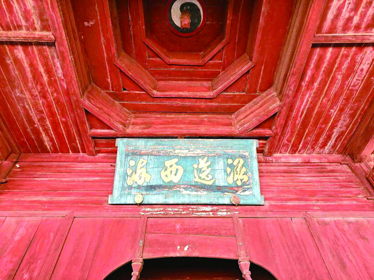 廊桥中央藻井下有一佛龛,用于供奉观音,佛龛上还有一块匾额。第一次见这块匾额的人,大多只能认出四字中的“西”。王永良告诉记者:“匾额上的字,说什么的都有,三年前我们请了书法大家来辨认,才认出来上面写的是‘渌绕西流’。”通洲桥四周绿水青山环绕,一条梅溪自东向西流入兰江,的确是渌绕西流。