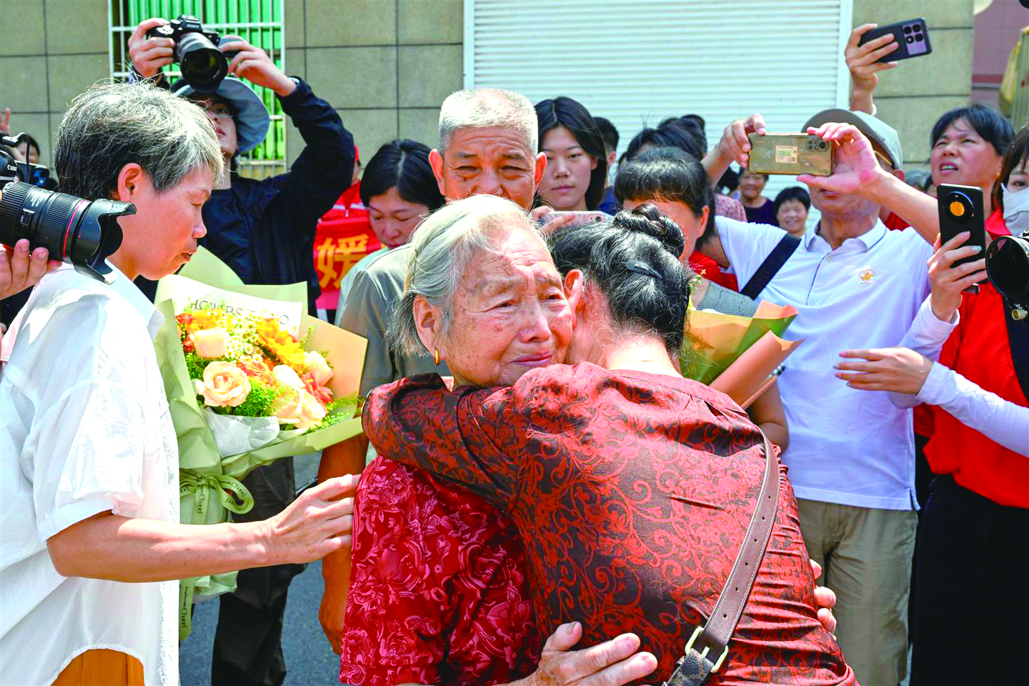 “来了!来了!”当69岁的何嫦媛在寻亲志愿者陪伴下走出车门,田富妹踉跄着迎了上去。两个离别近七十载的身影紧紧相拥,压抑积蓄的泪水奔涌而出,濡湿了彼此的肩膀。
