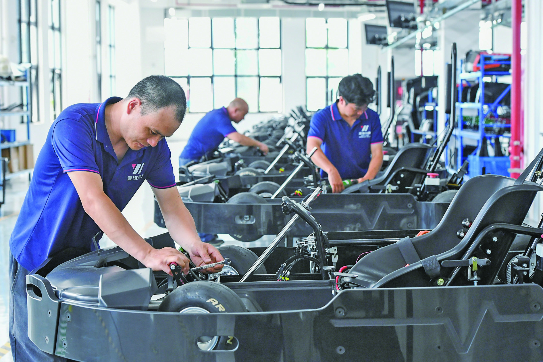 记者 时宽兵 文/摄 昨日,在位于金东区的金华市埃克斯科技有限公司生产车间,工人正在装配电动卡丁车。 据悉,该公司生产的电动卡丁车出口到美国、澳大利亚、吉尔吉斯斯坦、泰国等多个国家,受到客户青睐,今年以来出口订单不断。