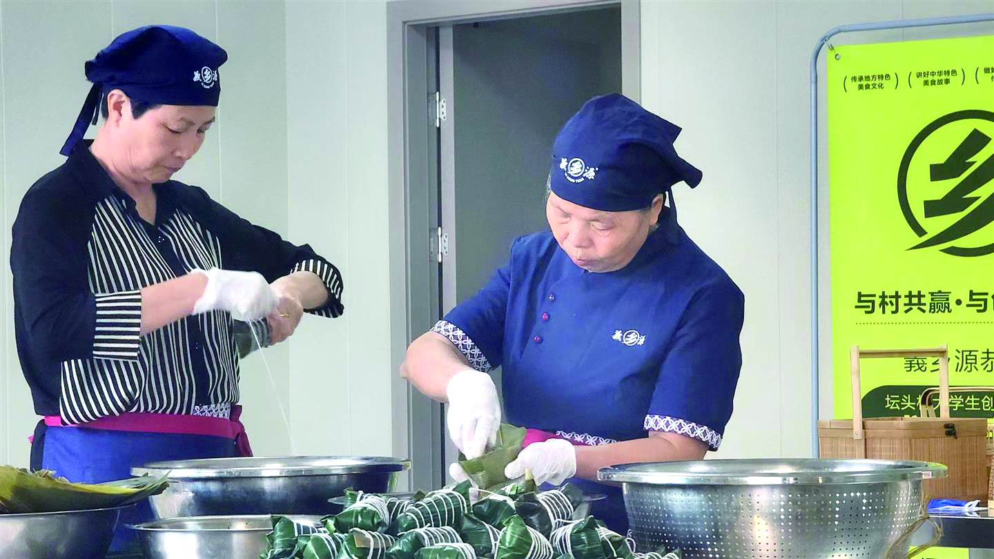 灰汤粽带来的这份“烟火”远不止于舌尖。“端午前后,最多时每天有十来个村民在工坊上班,月收入能达到四五千元左右。”罗清静告诉记者,除了通过员工招聘、粽叶及捆绳采摘等多种方式让当地村民实现了家门口就业,他的特色美食工坊还与新宅、柳城等南部山区乡镇的农户建立了土猪肉、莲子等食材供应合作关系。