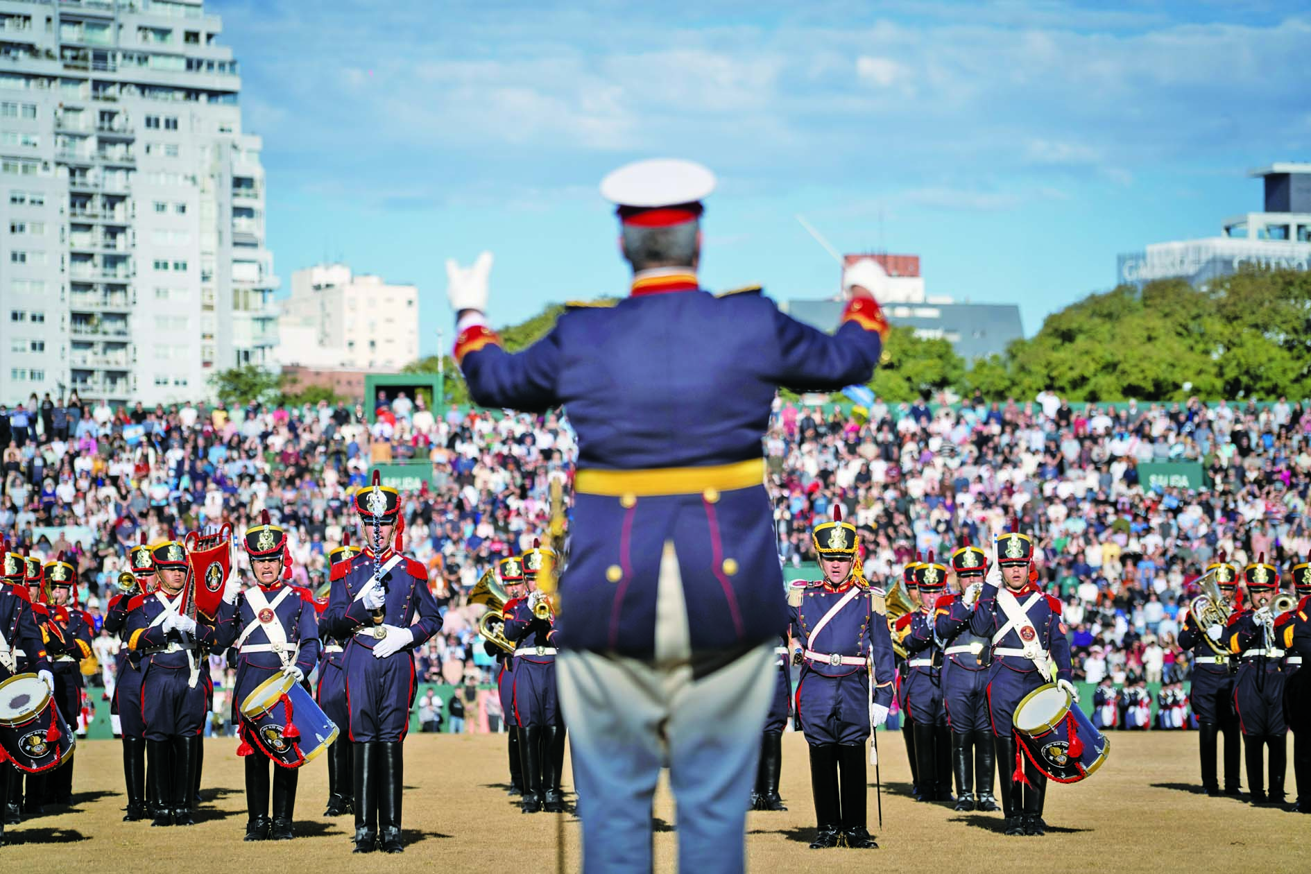 7月9日,在阿根廷首都布宜诺斯艾利斯,军乐队队员参加军乐节表演。 当日,为庆祝阿根廷独立209周年,布宜诺斯艾利斯举行军乐节等系列纪念活动。 新华社发