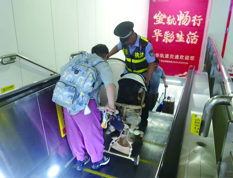 通讯员 吴迅 文/摄 “请有序排队,注意脚下安全”“慢一点,我来给你搭把手”……连日来,在铁路金华南站,金东区综合行政执法局驻点执法小组队员身着制服,规范佩戴,在热浪中维持秩序、疏导车流、解答旅客问询,以规范执勤、文明引导守护旅客的平安出行。 为保障暑期车站秩序,该执法小组严格落实规范化执勤要求,采取“定点+巡逻”相结合的方式,加大对站区重点区域的巡查力度。同时,站前增设便民服务点,为旅客提供防暑降温用品,让执法服务更有温度。