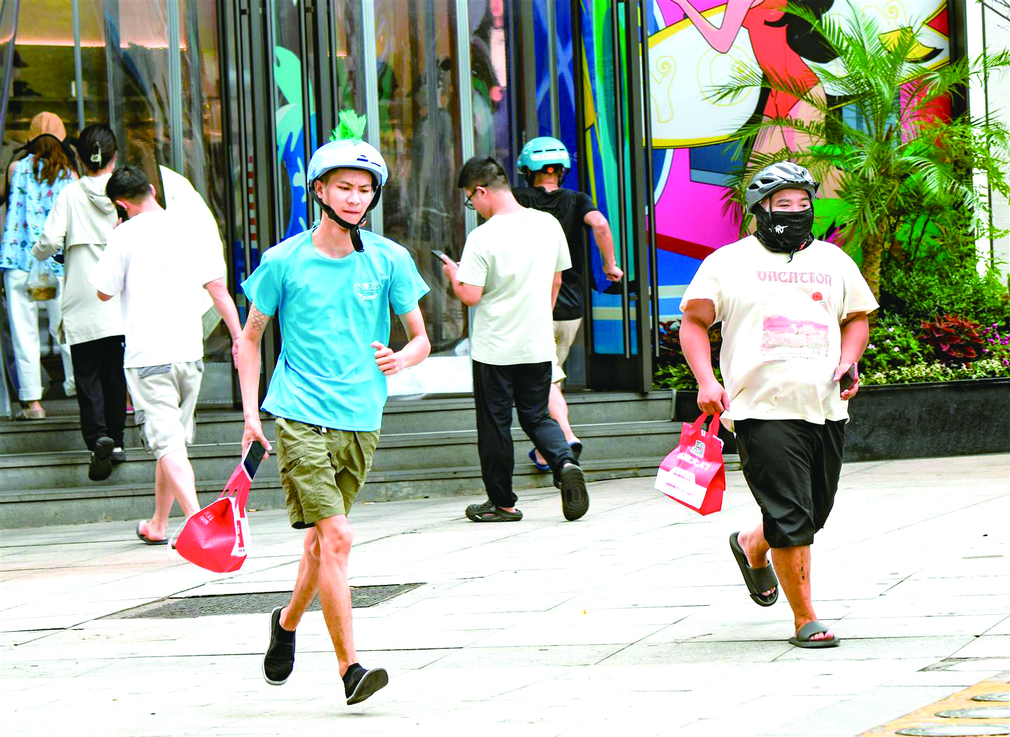 记者 李建林 文/摄 昨天,在市区文化路上,记者看到一些外卖骑手在跑步送单。 连日来持续高温,很多人宅在家里不愿出门,使外卖订单量不断攀升。外卖平台数据显示,7月以来,饮料、冷饮外卖订单同比增长超过40%。每天11时到13时,是订单量最多的时候,高峰期一个骑手有将近20单外卖要配送。
