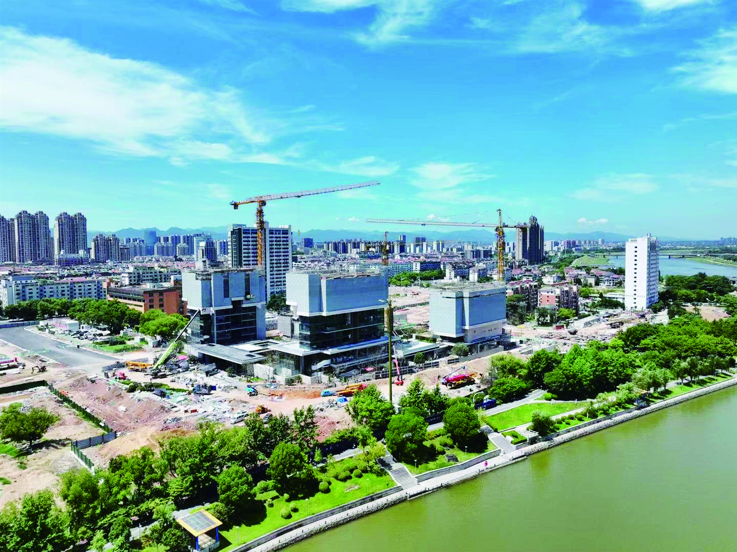 进入夏季,金华开发区龙渎河南岸的双溪西路片区在高温中呈现火热的建设景象。