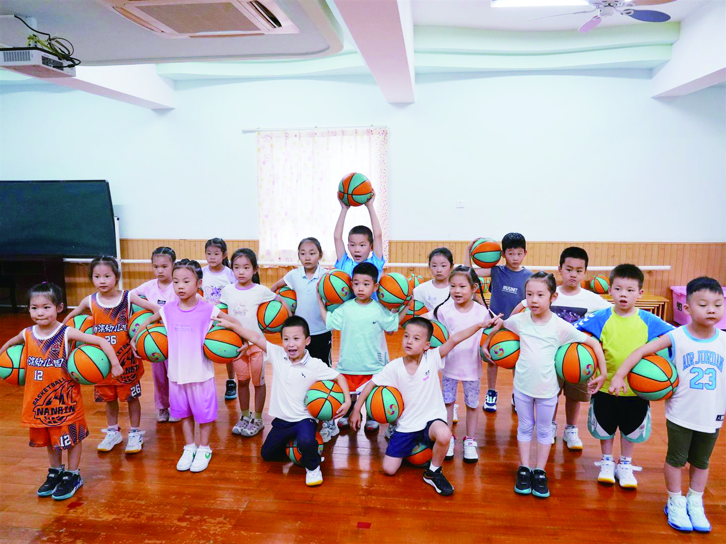 “南滨幼儿园的篮球操编排已经有10年了,在省、市各项大赛都取得了不错的成绩。”该校篮球主教练贾妮娜介绍,她从小对篮球这项运动十分热衷,当上老师后,也有意培养孩子们对篮球的热爱,在体育运动中收获快乐和自信。