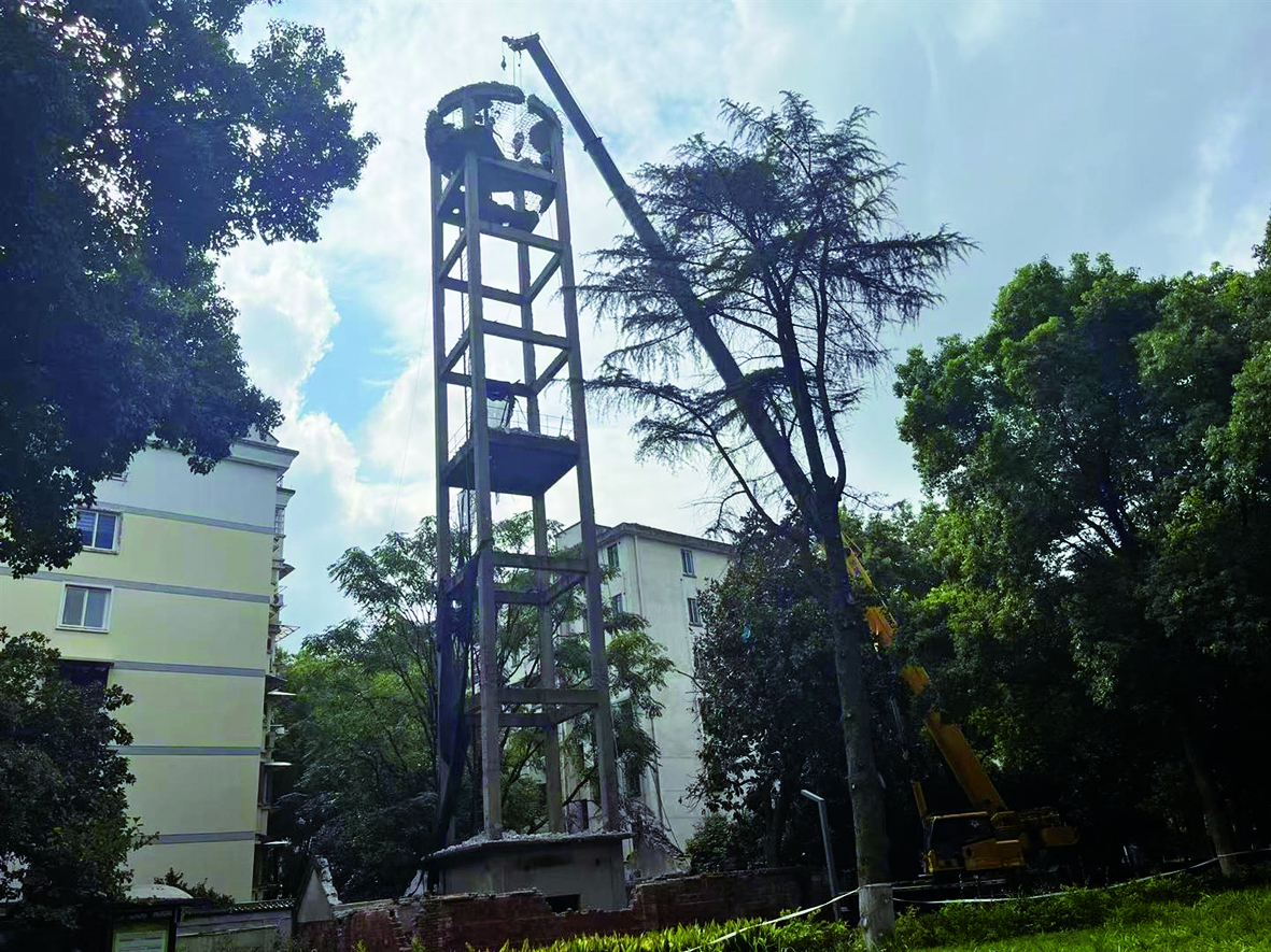 据了解,这座高近30米的水塔经专业评估,存在可能发生结构坍塌的风险。水塔下面不仅是小区居民出入的必经之处,其所处位置本身又是公园,平时游客较多。为彻底消除安全隐患,保障群众生命财产安全,金华开发区建设部门、金开城投公司等非常重视,6月26日安排施工队进场施工。