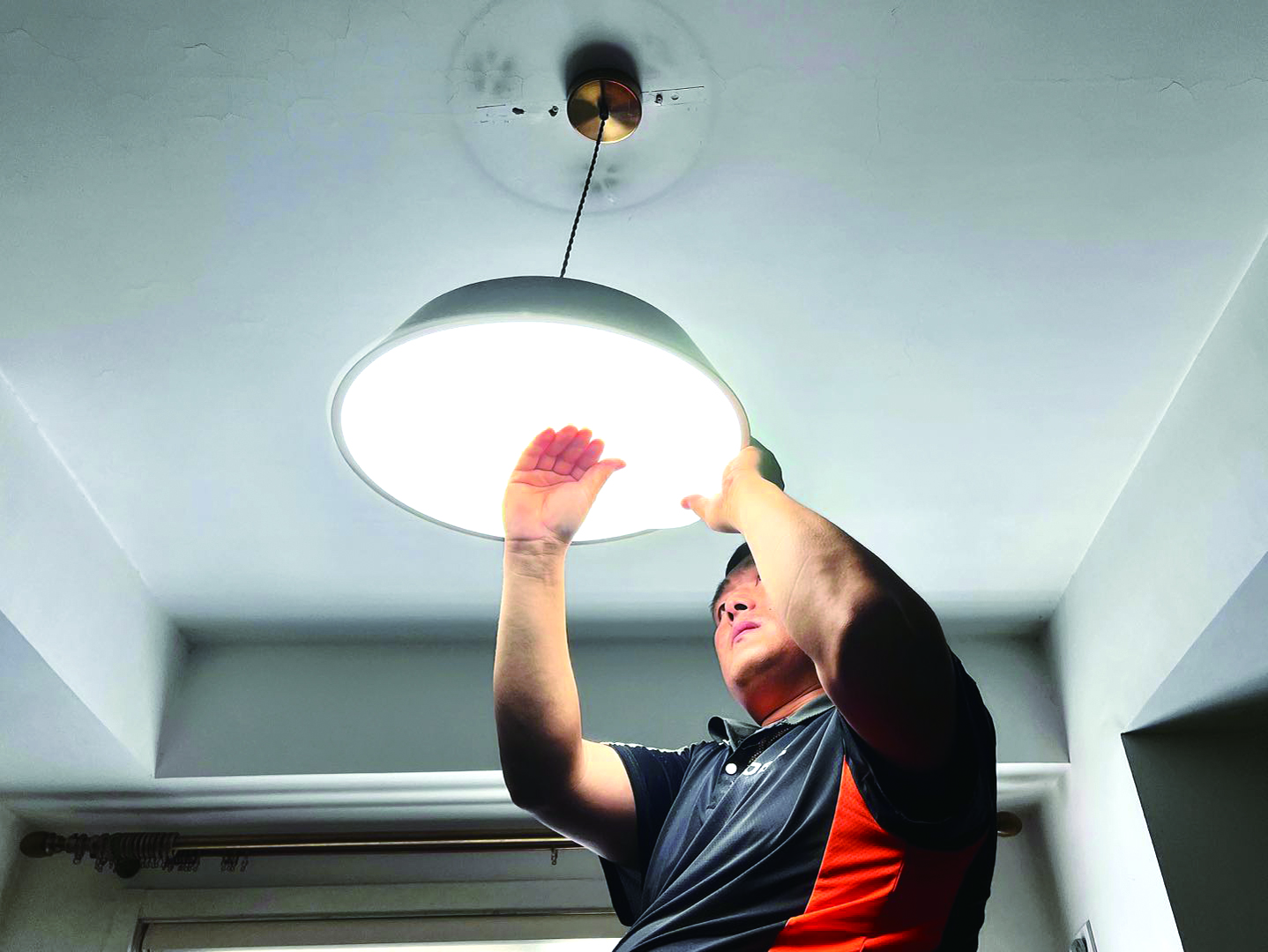 记者 徐莹 文/摄 “用塑料袋套在钻头上,这样打钻时掉下的水泥、石灰就不会弄脏顾客的家。”来自安徽的水电安装工王师傅一边打钻固定灯具支架,一边说。 盛夏正午,王师傅穿梭于金华城区的楼宇之间,一天要做10多单安装业务。他主要依托淘宝平台接收订单,为网购灯具、水龙头的客户提供上门服务,月收入还不错。 国家推出家电、厨卫节能补贴政策后,智能灯具、高效水龙头等产品销量骤增,安装需求随之密集爆发。王师傅常常要提前一天规划次日安装路线,烈日下挥汗赶场,忙得无暇歇息。国补政策点燃消费热情,电商平台则让这热情迅速传递至安装链条末端,为消费者提供实实在在的便利。