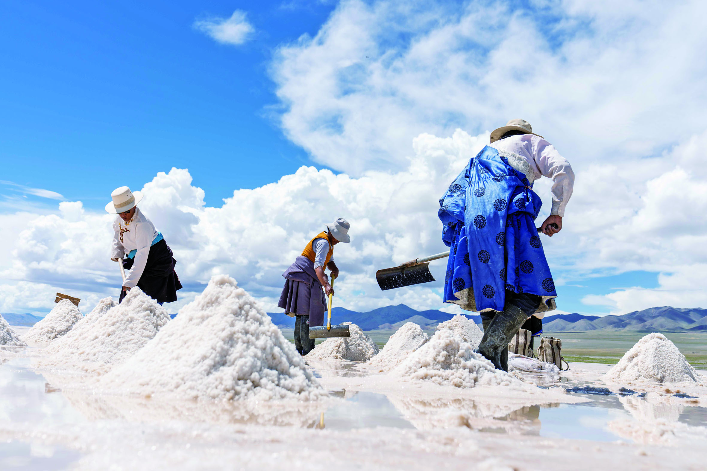7月20日,革吉县牧民在采盐。 西藏阿里地区革吉县盐资源丰富。为促进村民增收,当地建起了粗盐加工厂,逐步形成采盐、储存、加工、包装和销售于一体的产业链。2018年,革吉驮盐习俗被列入西藏自治区非物质文化遗产代表性项目名录。 新华社发