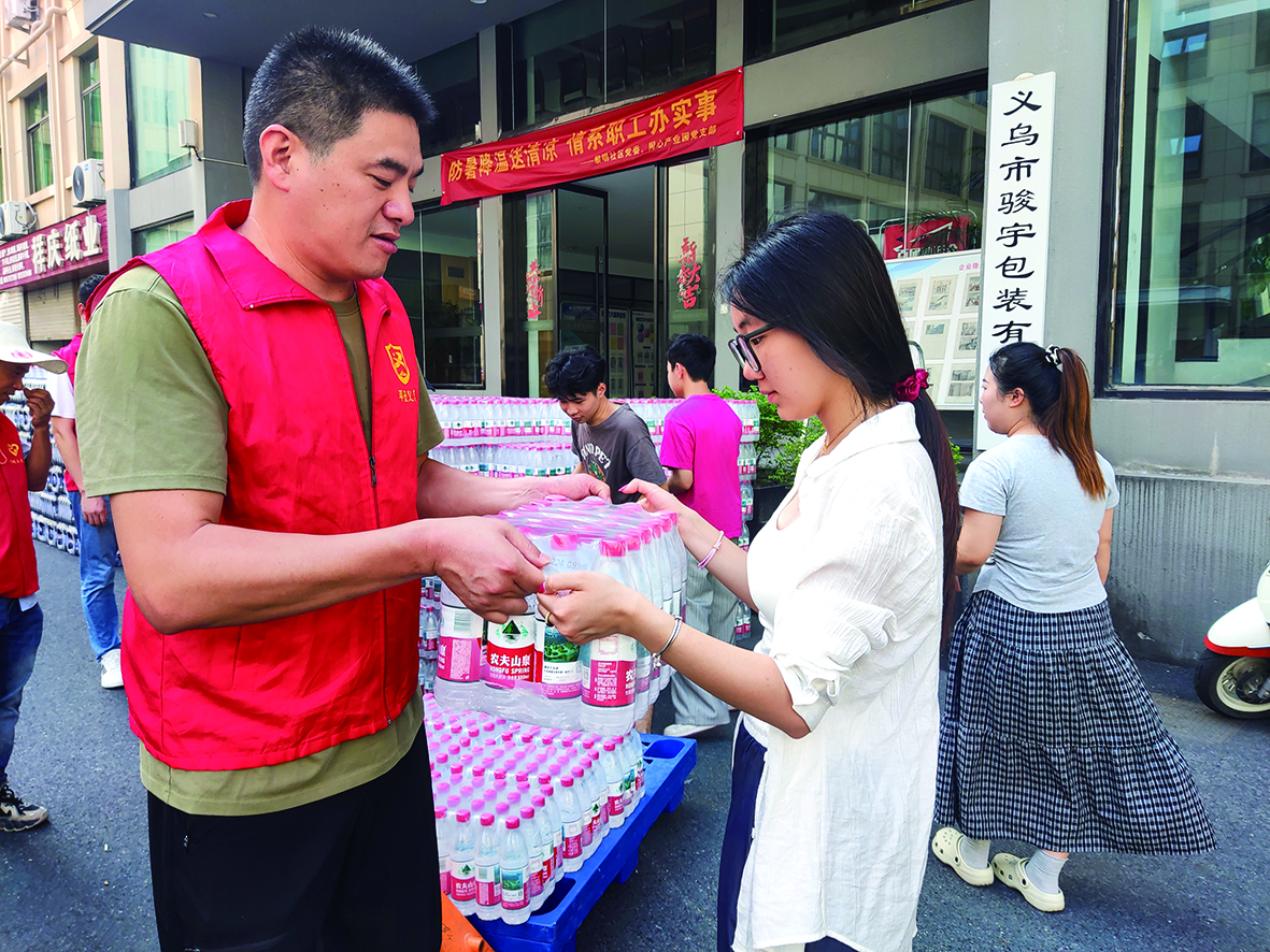 夏季气温高、湿度大,降水和强对流天气偏多,对职工的生产生活会带来一些不利影响。活动当天,社区和同心园党支部党员分组走访生产一线,将清凉饮品送至职工手中,并叮嘱企业合理调整高温作业时间。一条“防暑降温送清凉,情系职工办实事”的横幅下,党群携手搬运物资的场景,成为园区最生动的“同心”风景。