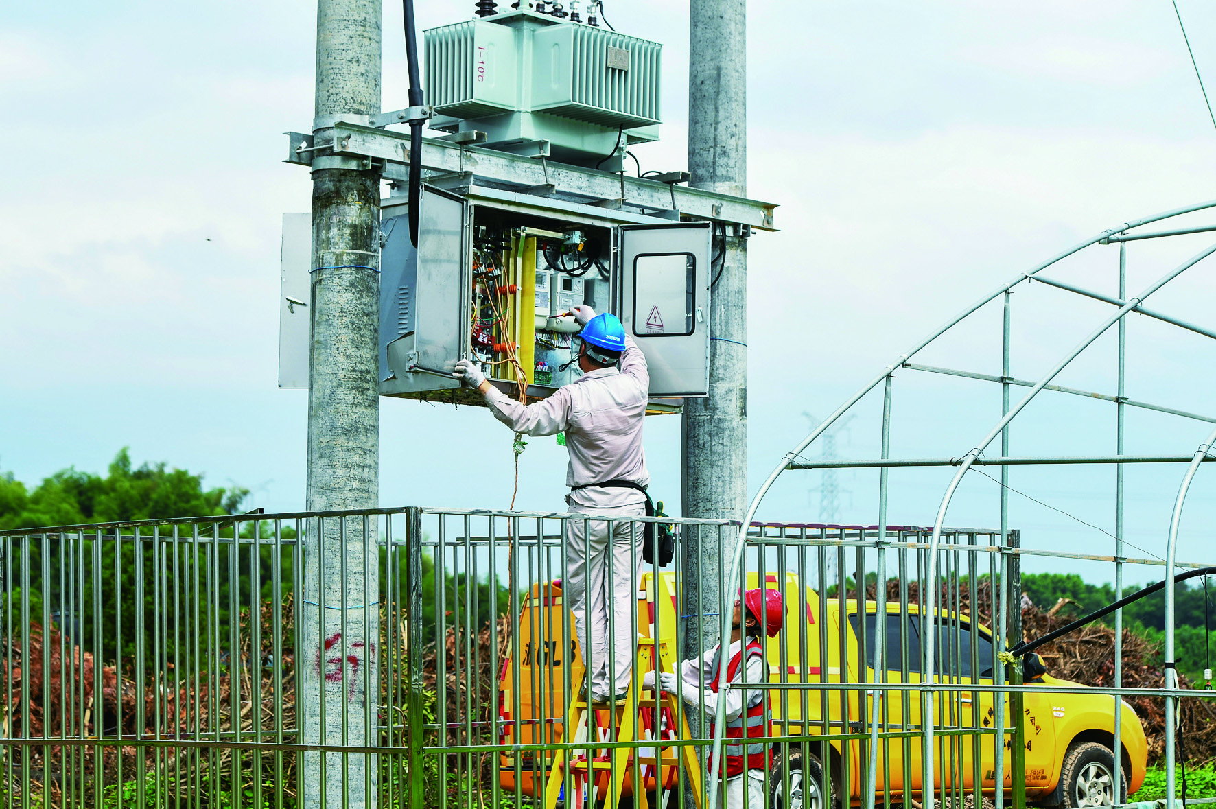 记者 时宽兵 文/摄 昨日,国网金华婺城供电分公司工作人员来到长山乡,为种粮大户徐银宝的粮食烘干房装表送电。 据了解,徐银宝种植了1050亩早稻,粮食烘干房新增较多设备,低压供电无法满足日常需求。婺城供电分公司工作人员得知情况后,专门为其架设线路,增加电容稳定电压,保障“双抢”时节稻谷烘干。
