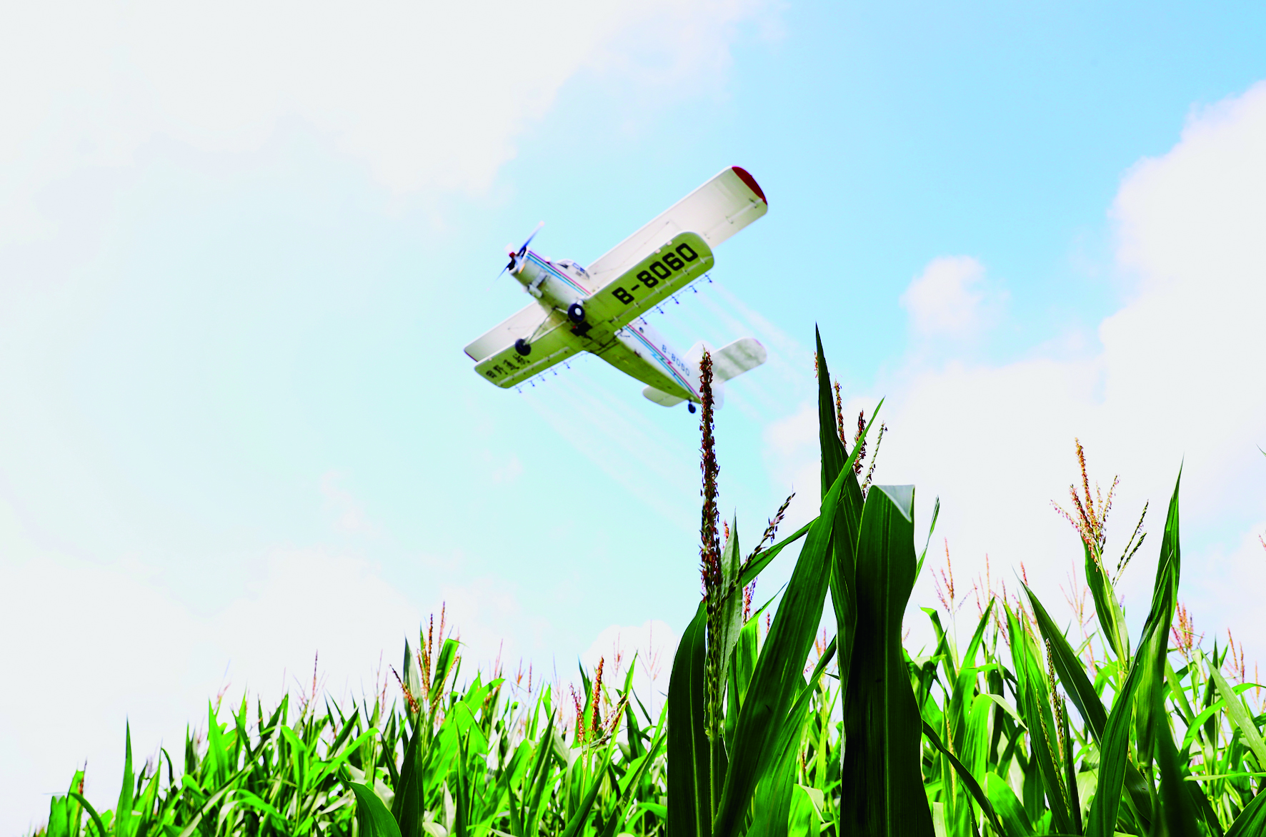 7月25日,在北大荒集团北安分公司赵光农场有限公司第五管理区玉米地号,一架农用飞机在进行航化作业。 近日,黑龙江垦区北大荒集团各农业生产单位旱田航化作业陆续展开,为3000余万亩旱田作物生长“健身防病”,助力粮食增产丰收。 新华社发