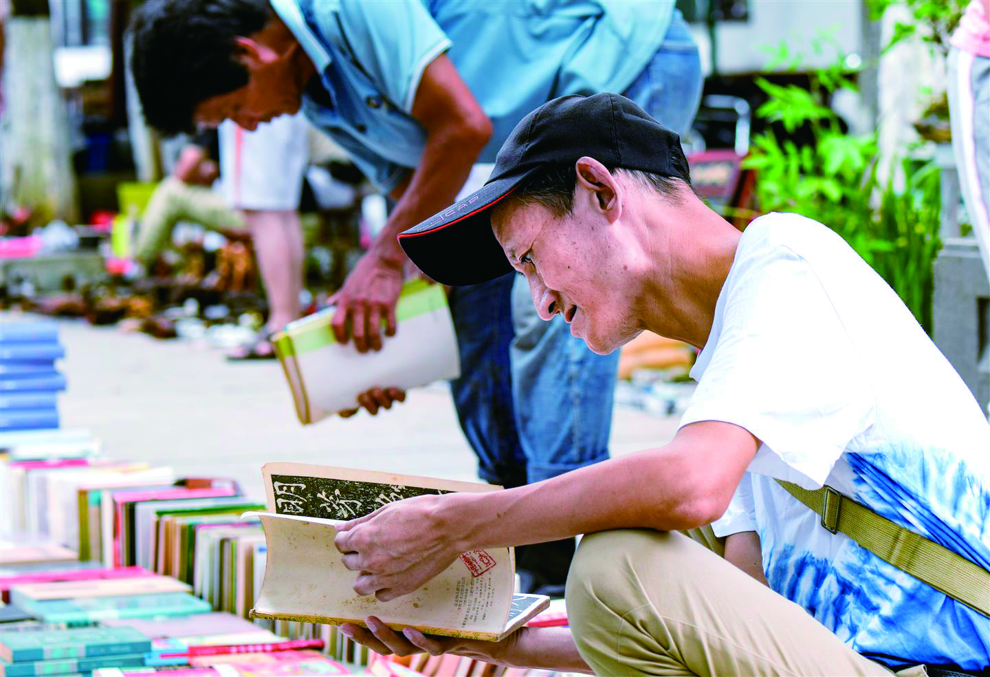 记者 李建林 文/摄 7月27日,市区婺州古城的旧书市集吸引了许多爱书人。旧书市集汇聚了各种旧书、名家墨迹手稿、特装书等。一摊主说,现代人虽习惯刷手机,却依然享受实体书的触感与“未知的惊喜”,很多人来淘书没有明确目标,但翻到一本品相好、价格合适的旧书,就会开心地买走。