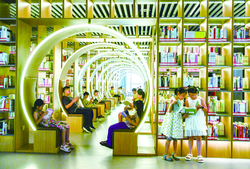 记者 时宽兵 文/摄 暑假期间,不少中小学生在金东区图书馆“时光隧道”长廊书架旁看书。 据了解,金东区图书馆不仅提供免费饮用水、无线网络,还为中小学生专门设置暑假作业区域,让他们在书香中度过快乐假期。