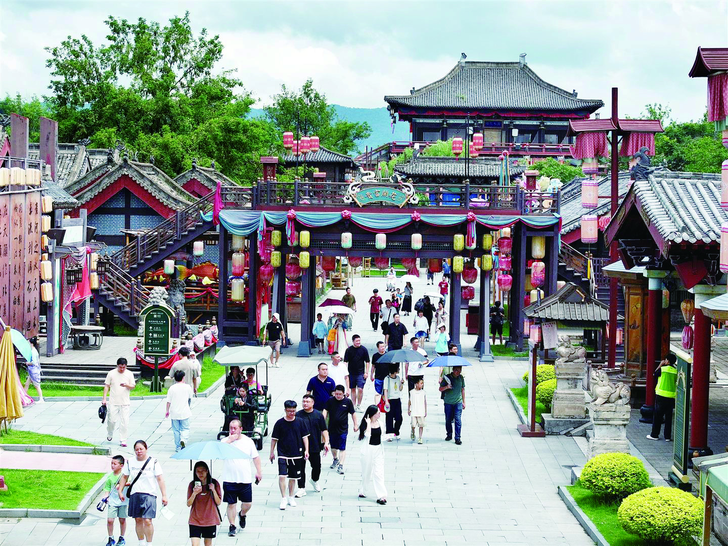 通讯员 胡扬辉 文/摄 7月27日,东阳市横店影视城清明上河图景区热闹非凡。 据了解,清明上河图景区以北宋画家张择端的《清明上河图》为灵感,深入挖掘其精髓,并融入北宋时期的社会风貌、民俗风情以及古代建筑的独特韵味,为影视拍摄精心打造而成。趁着暑假,许多家长带着孩子到此旅游,沉浸式体验穿越时空的魅力。