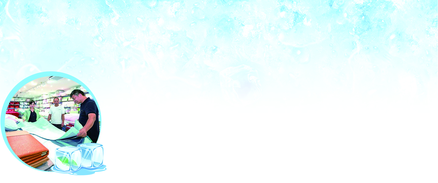 记者在各大商场和家居用品店看到,清凉床上用品被摆放在显眼位置。在江北银泰城某家居品牌店,70%货架上摆着凉柔薄被套装、凉柔凝胶床垫、凉柔编织毯等产品。这些产品主打“接触瞬间即感凉爽舒适”,吸引众多消费者。