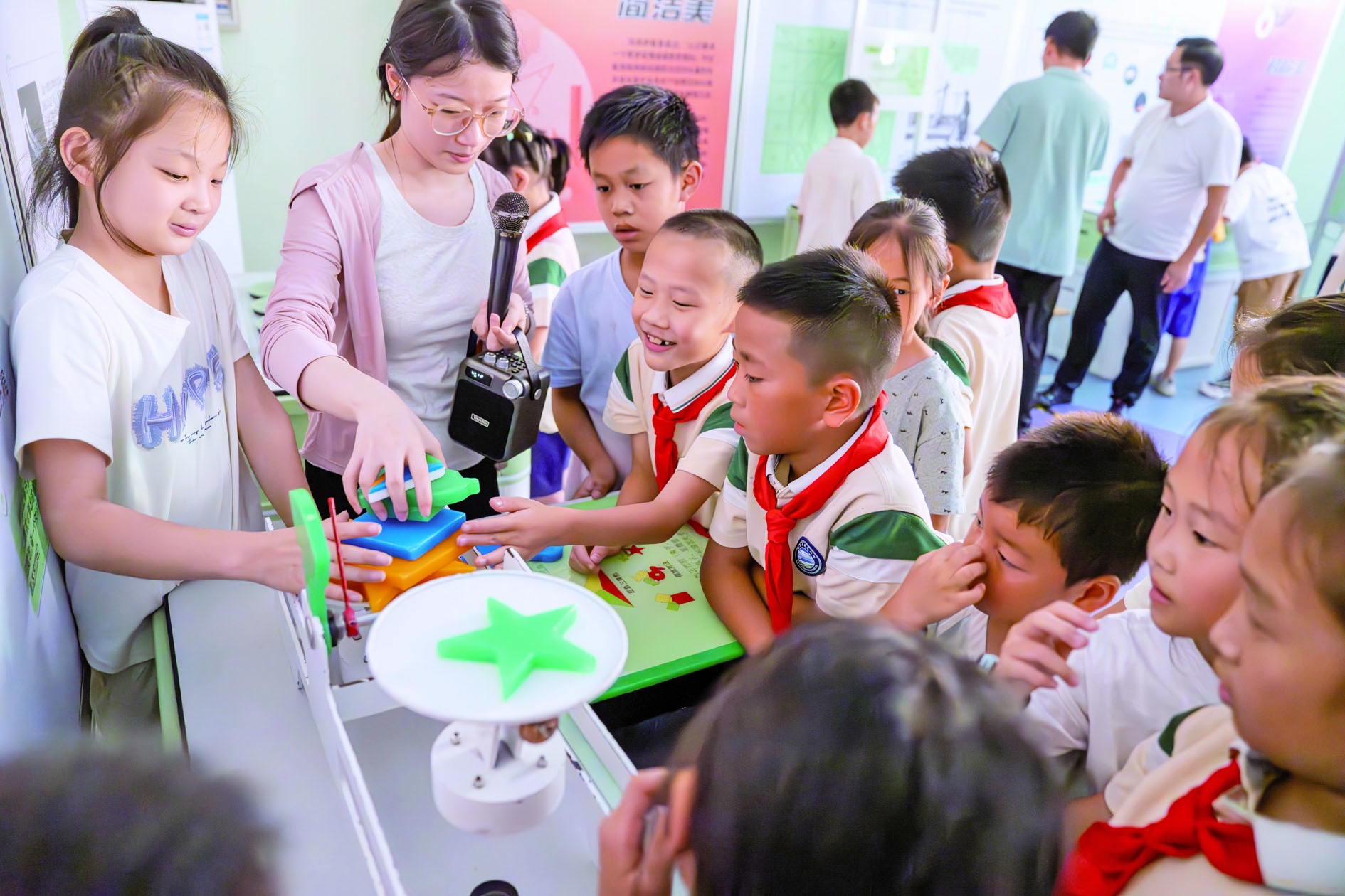 记者 陈业 实习生 许晗宁 文/摄 7月28日,以“仰望星空·解码数字·守护视界”为主题的中国流动科技馆活动在武义县青少年宫启动。连日来,当地孩子们通过该场巡展的天文、数学、爱眼三大主题展区,充分感受科技奥秘。 据悉,此次巡展将持续至9月底。