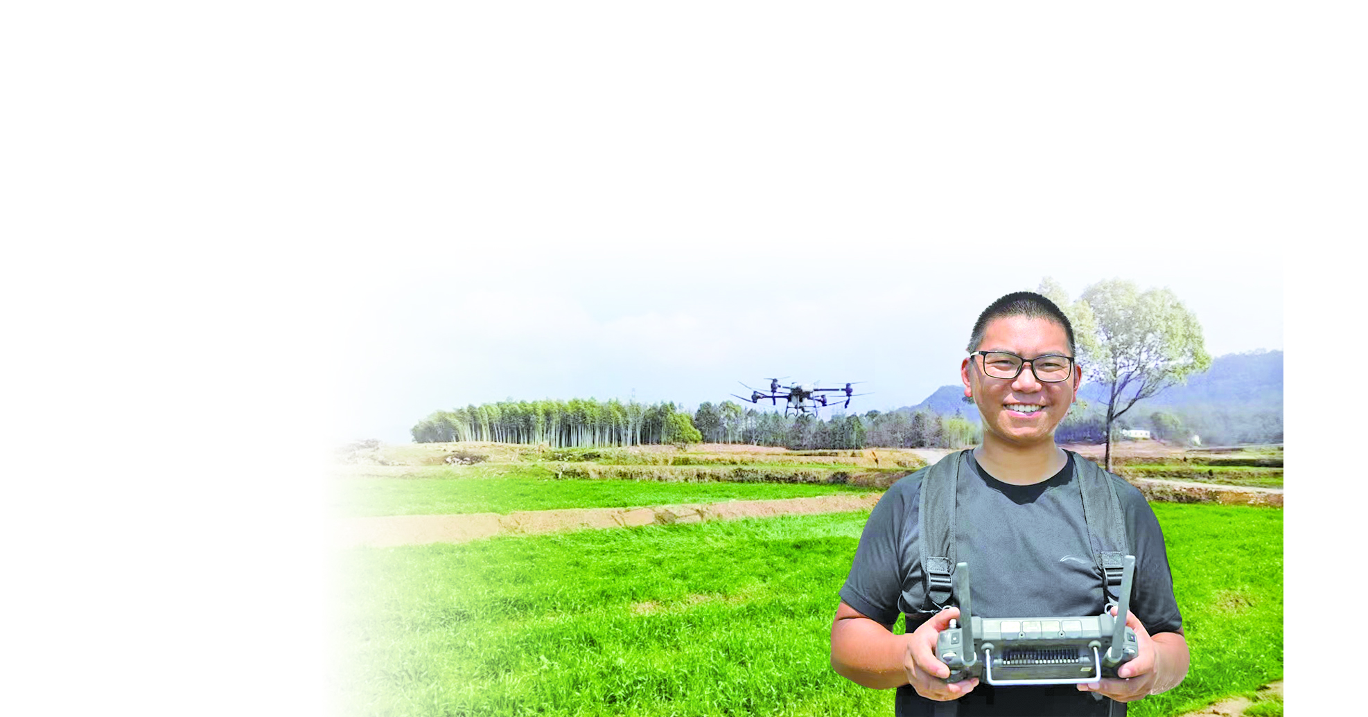 “准备起飞!”随着徐跃的指令,三架植保无人机掠过青青稻田。2017年返乡创业时,他花6.5万元购置的首台无人机尚无摄像功能,全凭母亲持对讲机当“人肉导航”。“创业初期,用无人机两天喷完400亩地,顶得上30个劳力。”徐跃说。如今团队已拥有10余名专业飞手,20余台设备,年服务农田超10万亩。智能设备可自主规划喷洒路线。转型为大疆代理商后,他建立的培训基地累计输出近500名飞手。“低空经济正打开万亿市场。”徐跃调试着新设备介绍,持证飞手起薪五六千元,资深者月入过万,无人机正成为新农人标配。