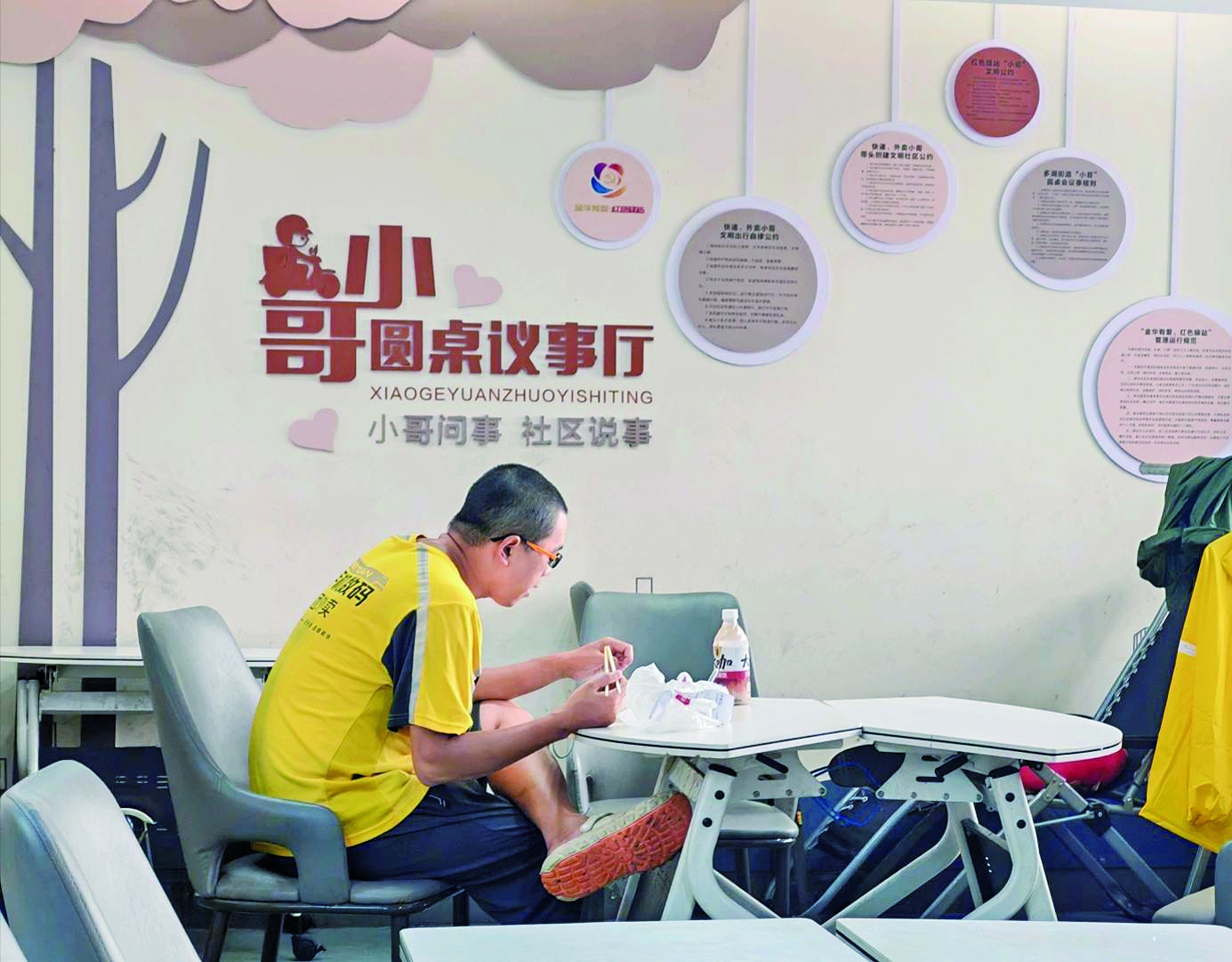 当“站长”期间,记者在驿站还看到一个小哥圆桌议事厅。这是平时让小哥参与城市基层治理的区域。