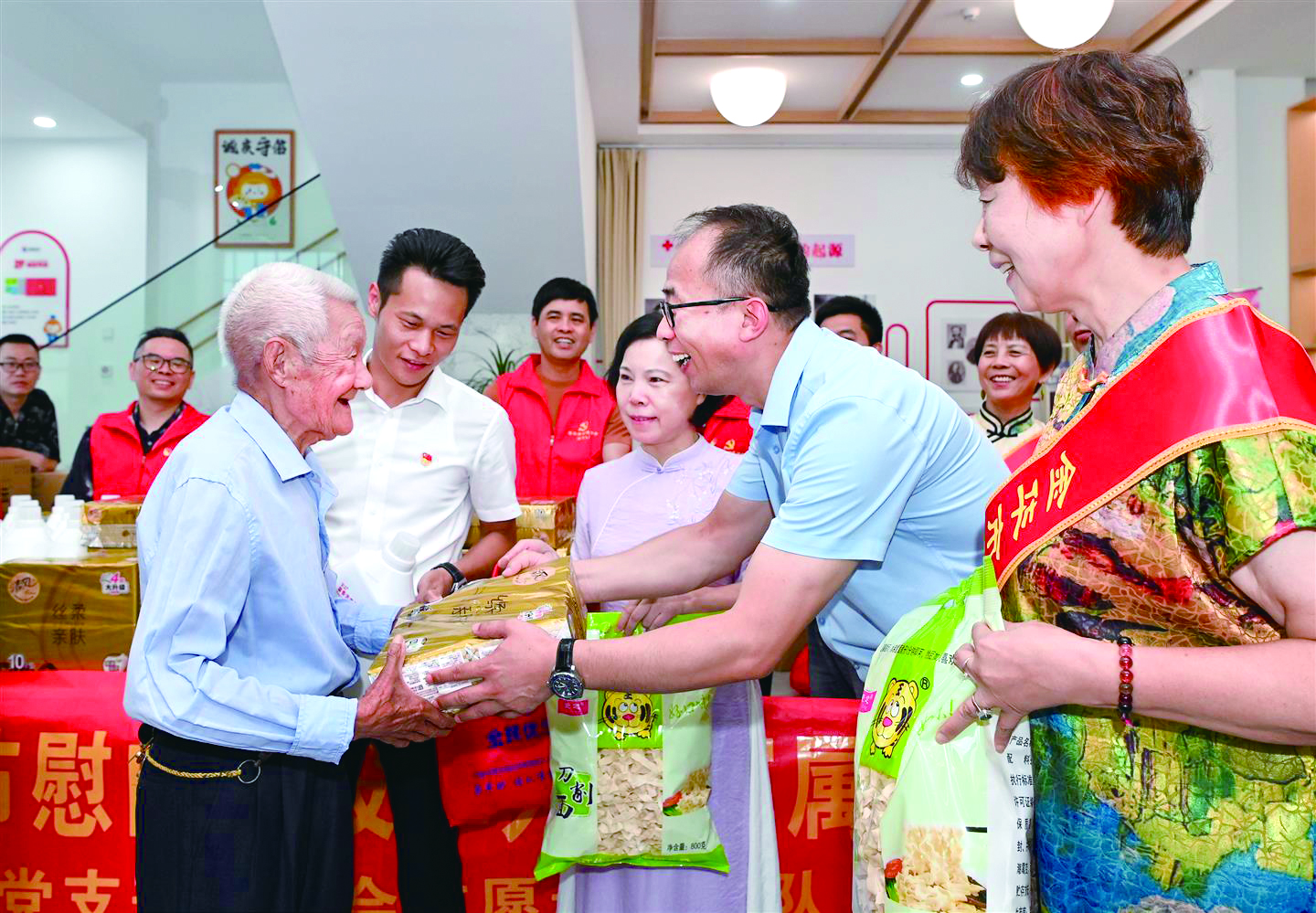 记者 李建林 文/摄 7月30日,市旗袍文化研究会、金华福建商会等单位工作人员来到金华开发区苏孟乡志和社区,开展“旗韵芳华 情暖老兵”拥军慰问活动。 其间,工作人员向退役军人及军属送上刀削面、手工馒头、羊奶饼干等暖心礼包。现场,市旗袍文化研究会还特别安排旗袍队走秀,演绎传统服饰之美。