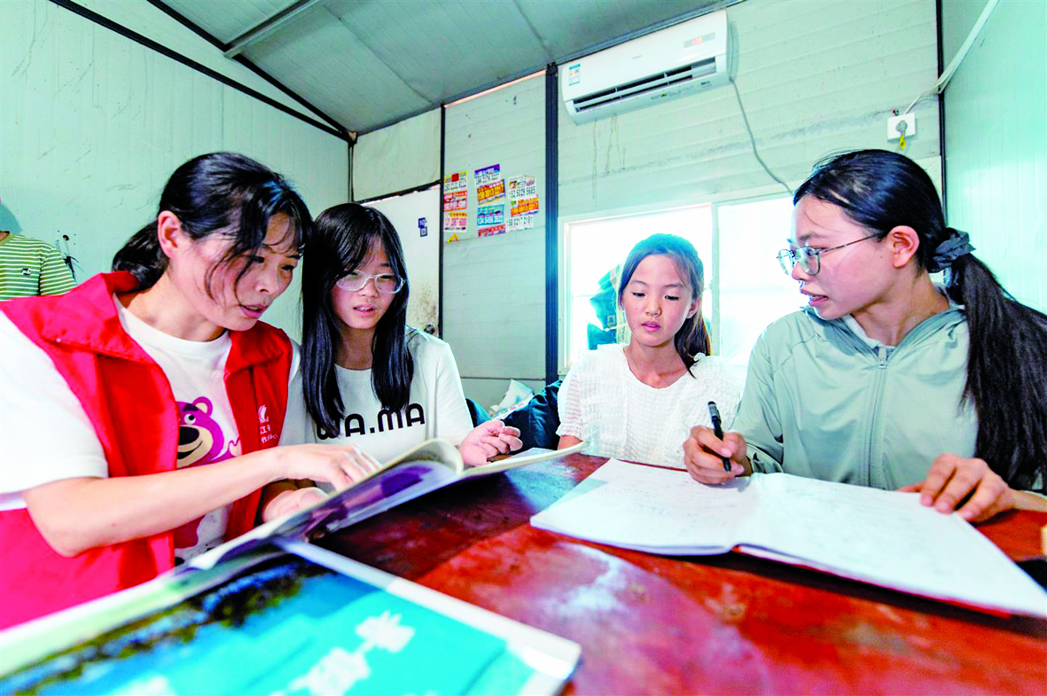 记者 胡肖飞 文/摄 昨日,在婺城区蒋堂镇莲塘村砖瓦厂宿舍里,当地公益志愿者帮助“小候鸟”复习功课。 进入暑期以来,婺城区不少企业的外来务工人员子女数量明显增加,处于“散养”状态。为解决他们的后顾之忧,当地公安部门联合爱心公益组织和“小候鸟”互助结对,组织大学生义务辅导“小候鸟”暑期作业,开展进企送温暖活动。