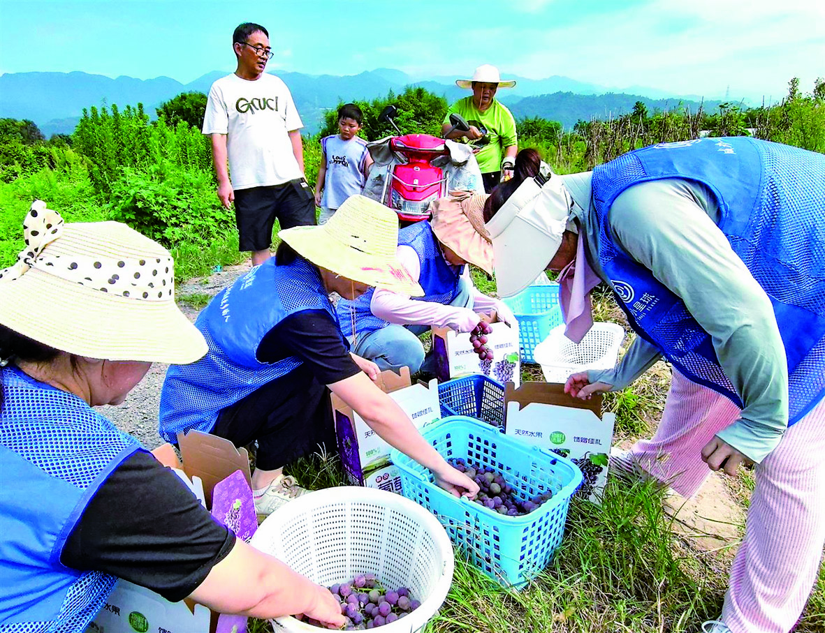 记者 李建林 文/摄 8月1日,金东区赤松镇岗上村村民楼钱荣因手术后行动不便,导致无法出售种植的葡萄,市区小星球公益协会的志愿者获悉后,现场采摘并认购800多公斤葡萄,帮助楼钱荣解了燃眉之急。