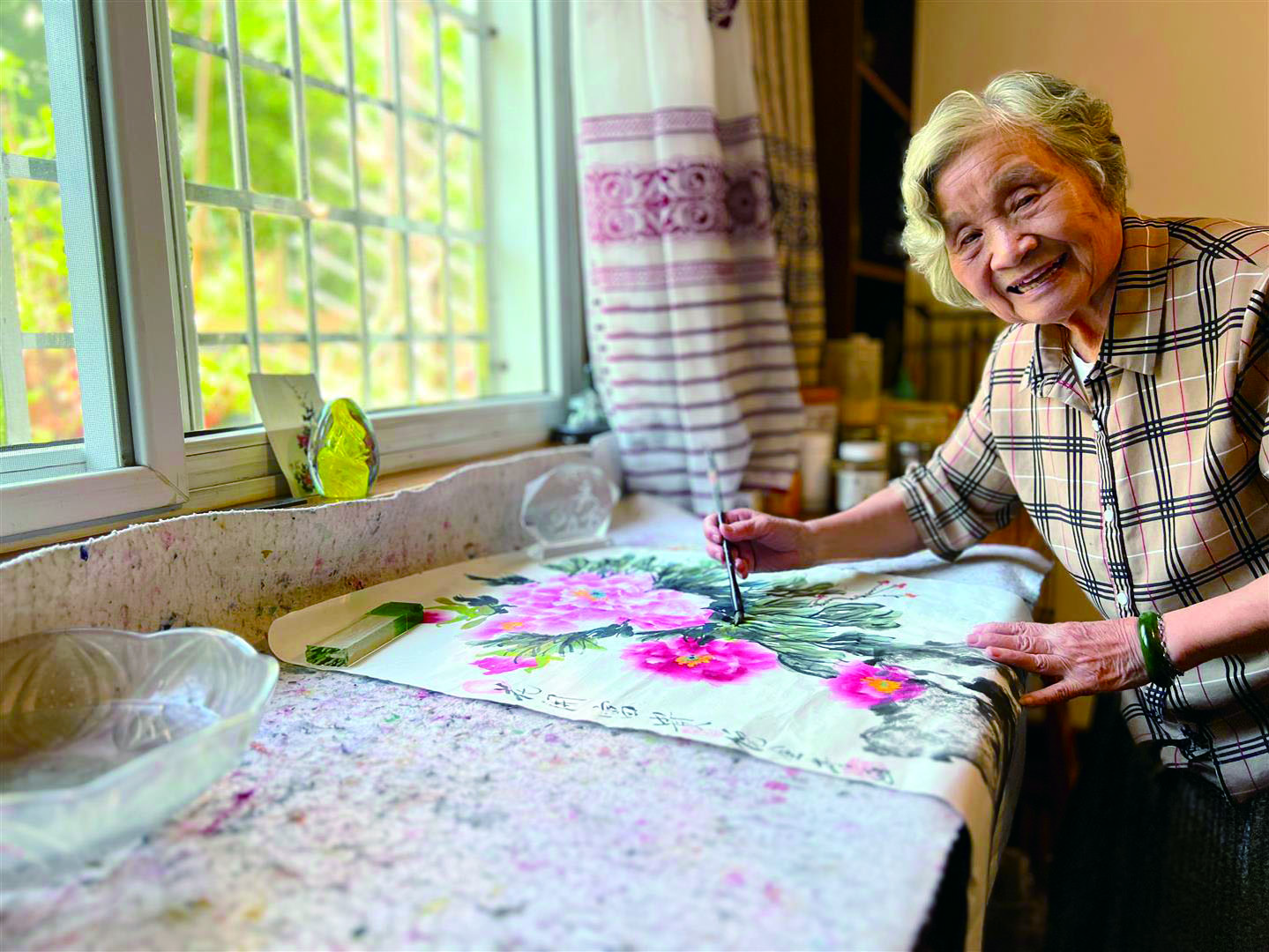 20多年前,丈夫离世,我的生活仿佛被抽走了一抹重要的色彩,一度陷入黯淡与寂静之中。为了重新找寻生活的乐趣与意义,我踏入了老年大学的课堂,学习花鸟画。