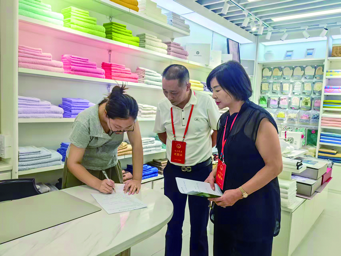 与此同时,人大代表们向商户发放了数百份宣传资料,同步开展生态文明建设问卷调查。旨在了解公众对生态文明建设的认知、态度及行为习惯,为后续政策制定提供了参考。不少商户主动上前与代表交流,反映存在的问题和困难,人大代表们一一认真记录,并不时就绿色经营技巧与商户交流探讨。