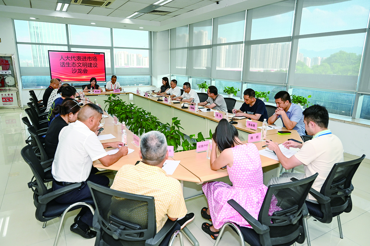 在随后召开的“人大代表进市场话生态文明建设”沙龙会上,商城集团相关负责人汇报生态环保工作现状、存在问题及改进计划。市场经营户、行业协会代表、人大代表提出中肯的意见建议。