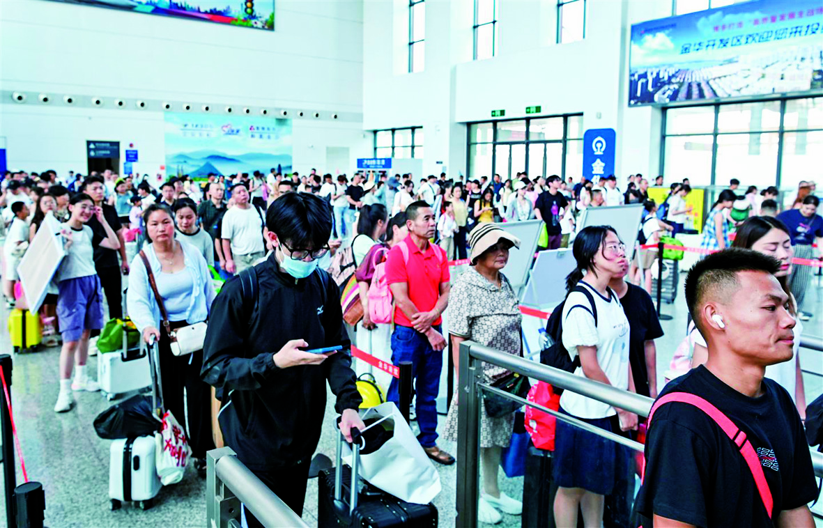记者 李建林 文/摄 连日来,铁路金华站进站处、安检口均排起长队,现场人头攒动,一派繁忙景象。为应对客流高峰,车站所有安检通道全部开启,工作人员高效操作着安检设备,引导旅客快速完成安检流程,确保每一位旅客都能顺利进站候车。 据了解,铁路暑运“下半场”已经开启,随着各大院校陆续开学,8月中下旬将迎来返程客流高峰。铁路部门提醒广大旅客,可通过铁路12306网站(含手机客户端),实时查询列车开行信息,合理安排行程。
