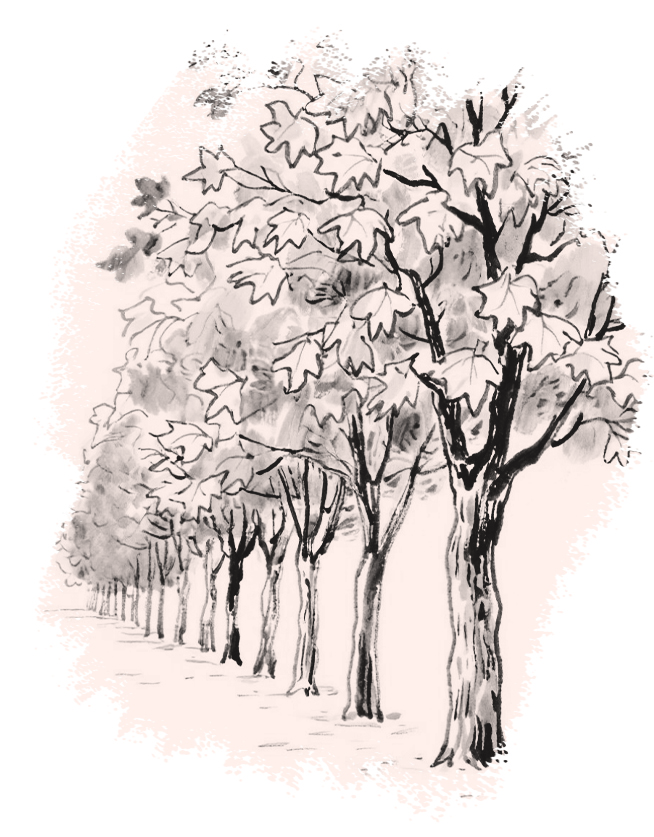 我说的梧桐其实不是我们这边常见的行道树,那些被称作“法国梧桐”的,其实是悬铃木。悬铃木势多逶迤,旁逸斜出的枝条支起偌大的树冠。中国梧桐,不然。