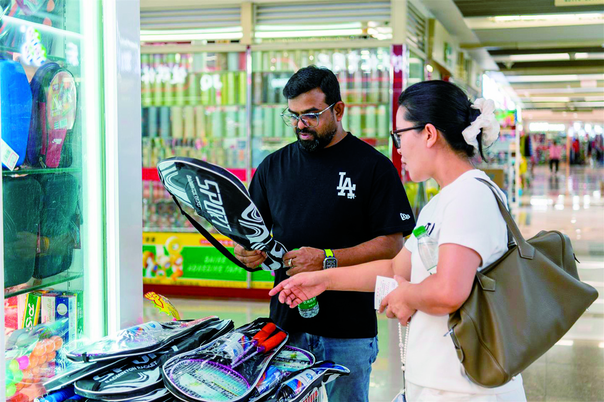 记者 胡肖飞 文/摄 8月6日,在义乌国际商贸城三区,客商在采购足球等体育用品。 2026年世界杯将于2026年6月11日在墨西哥揭幕,体育用品的热度悄然上升,足球、篮球、羽毛球和各种款式的运动服饰、健身器材、体育配件逐渐成为义乌国际商贸城的热销产品。据义乌海关统计,1—6月,义乌体育用品及设备出口大幅增长,涨幅达42.3%,出口额为50.2亿元。