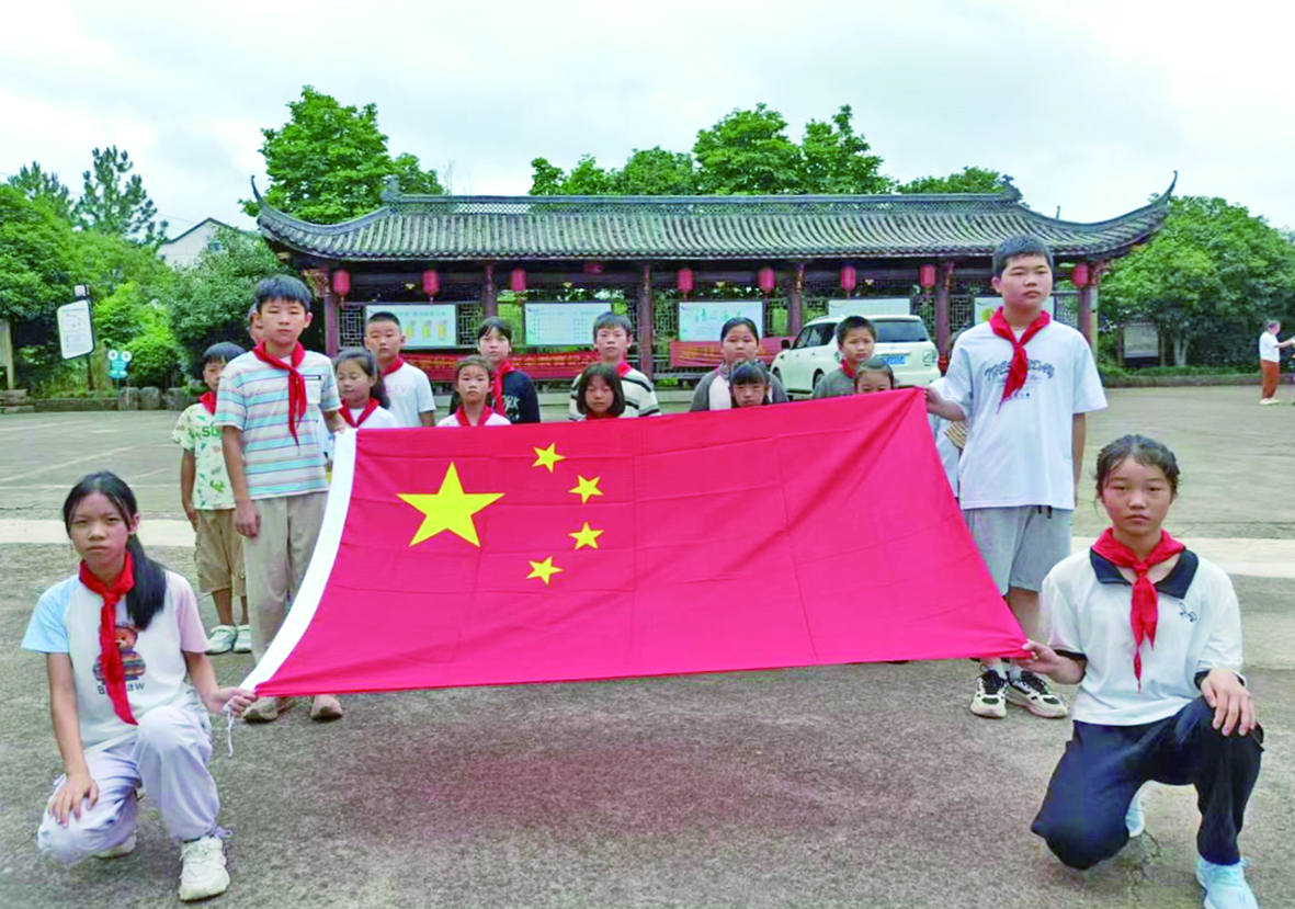 8月1日上午,金华开发区汤溪镇节义村广场上,一群佩戴鲜艳红领巾的少年成排肃立。当《义勇军进行曲》的激昂旋律响起,孩子们目视前方的国旗,高举右手行少先队礼,并齐声高唱。在八一建军节这个特殊的日子,节义村举行了特别的升旗仪式,为这些暑期托管班的孩子们上了生动的爱国主义教育第一课。