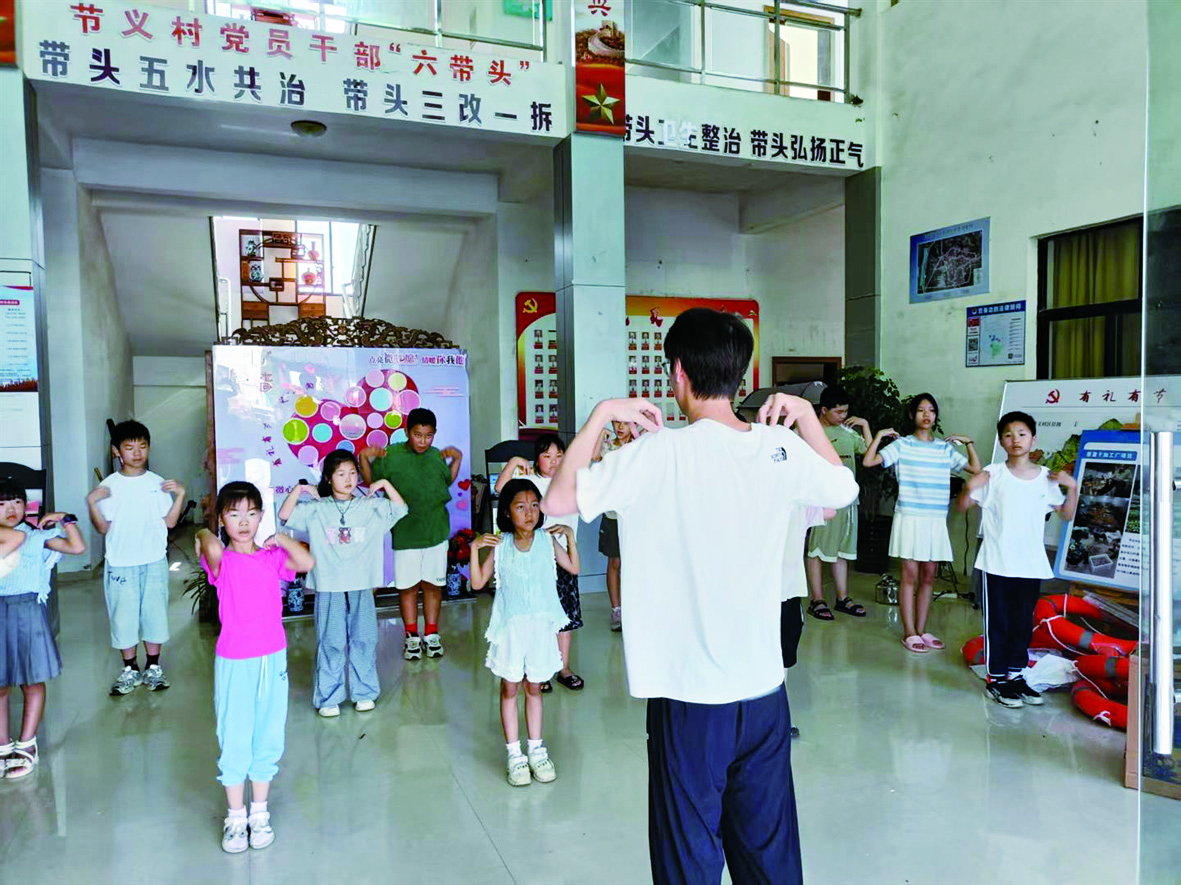 7月1日起,节义村文化礼堂正式成为孩子们的“第二课堂”。村里的返乡大学生和退休老教师们开展了为期8周的“萤火微光·筑梦课堂”公益教学行动,为孩子们定制了晨练、文化、书画等特色课程,组织他们开展下棋、看电影等娱乐活动,让乡村少年儿童的暑假有了探索新知的窗口。